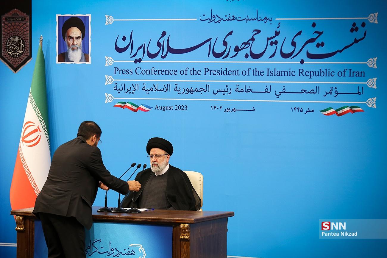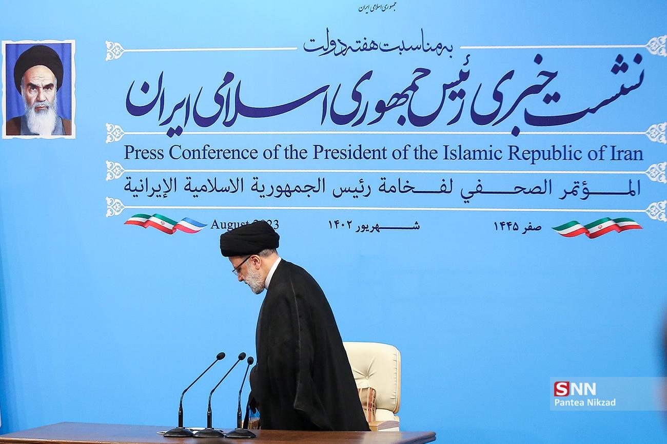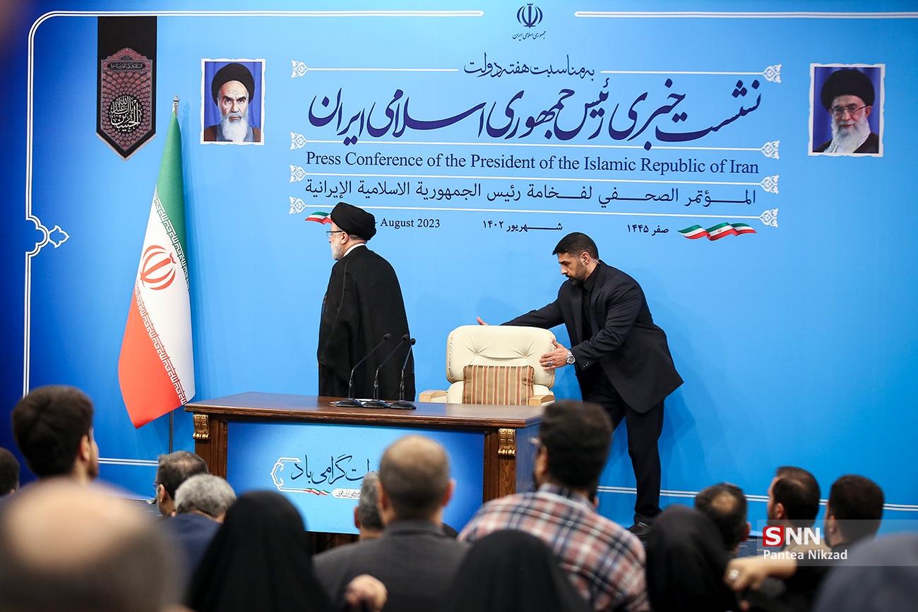 سومین نشست خبری سید ابراهیم رئیسی رئیس جمهوری اسلامی ایران صبح سه شنبه ۷ شهریور ۱۴۰۲ در سالن اجلاس سران برگزار شد.