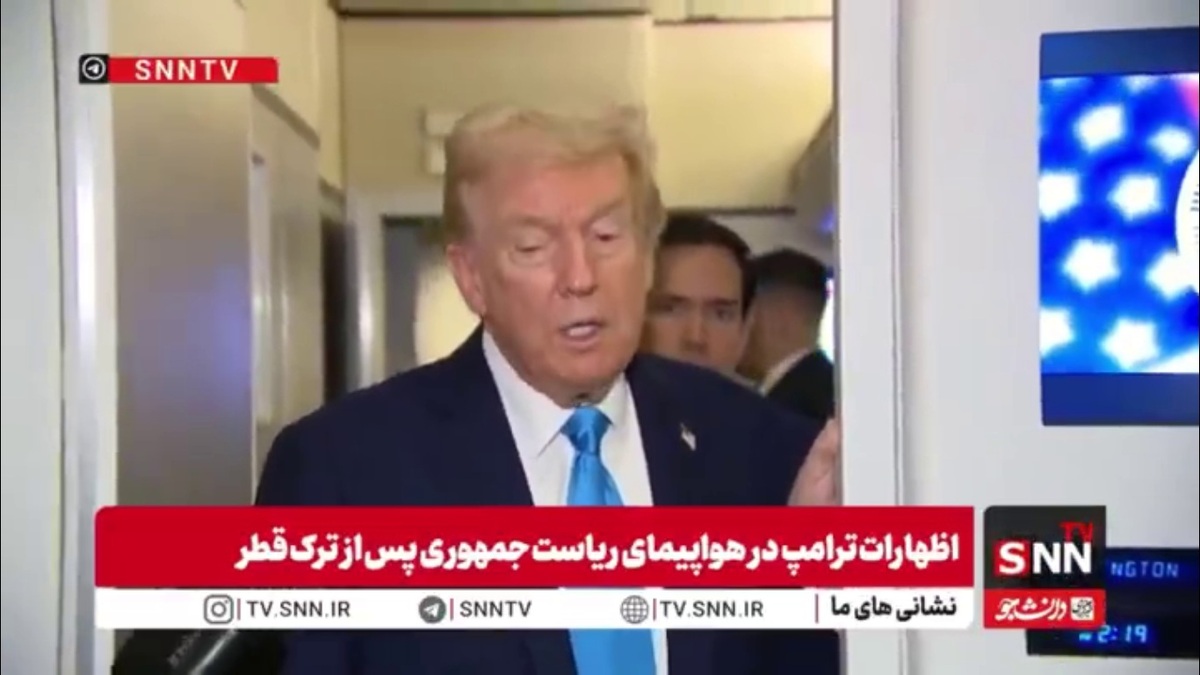 رئیس جمهور آمریکا در هواپیمای ریاست جمهوری پس از ترک قطر: پیشرفت عالی بود. درباره صلح در خاورمیانه صحبت کردیم این صلح فوقالعاده است و ما معتقدیم که ماندگار خواهد بود. خوشحالم که در این موضوع دخالت کردم و کمکهای زیادی کردیم. ۵۹ کشور توافق را امضا کردند و این باید یک صلح پایدار باشد. نکته اصلی این است که همه با این صلح موافقند. یک سال پیش این موضوع بسیار سخت بود. ما وقتی توان هستهای ایران را حذف کردیم و قابلیت هستهای را نابود کردیم، ظرف یک تا دو ماه آینده توافق ممکن شد. این تغییر بزرگی در خاورمیانه ایجاد کرد.