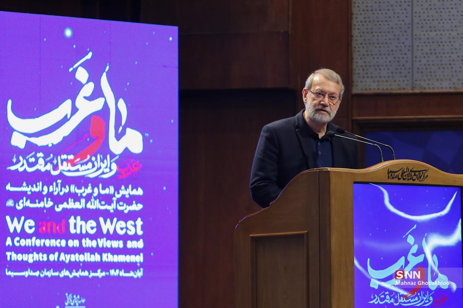 اختتامیه همایش ما و غرب در آراء و اندیشه حضرت آیت الله العظمی خامنهای صبح امروز دوشنبه ۱۹ آبان ماه ۱۴۰۴ با حضور علی لاریجانی دبیر شورای عالی امنیت ملی در مرکز همایشهای بین المللی سازمان صدا و سیما برگزار شد.