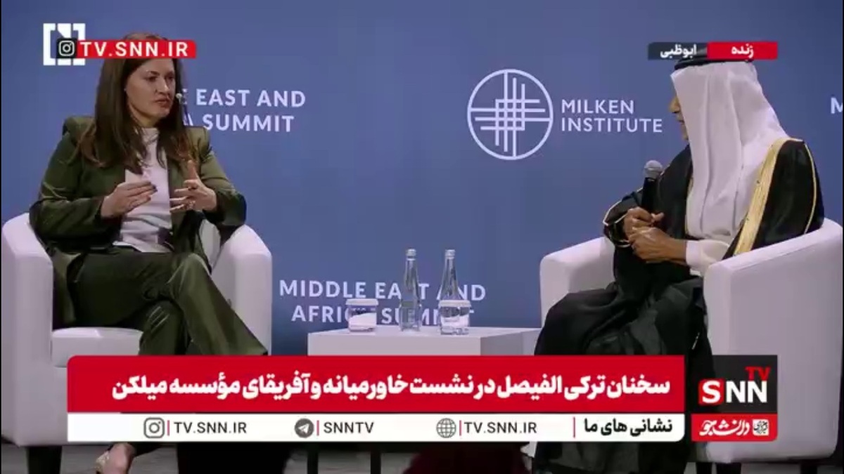رئیس سابق اطلاعات عربستان در نشست خاورمیانه و آفریقای موسسه میلکن: فلسطینیها در غزه و کرانه باختری بهطور مداوم هدف حملات اسرائیل قرار میگیرند. در لبنان نیز اسرائیل آتشبس را رعایت نمیکند و به حملات ادامه میدهد. رفتار اسرائیل هیچ نشانی از صلح و آرامش در منطقه ندارد. اسرائیل امروز نقش برهمزننده ثبات و ایجادکننده بحران در منطقه را بازی میکند. مهار اسرائیل باید نه تنها توسط آمریکا، بلکه از سوی جامعه جهانی انجام شود.