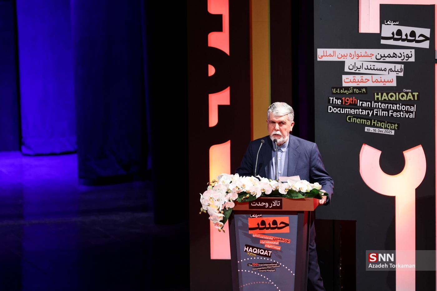مراسم اختتامیه نوزدهمین جشنواره بینالمللی سینمای مستند «سینماحقیقت» سه شنبه ۲۵ آذر ماه ۱۴۰۴ با حضور سیدعباس صالحی وزیر فرهنگ و ارشاد اسلامی، رائد فریدزاده رئیس سازمان سینمایی و با تقدیر از برگزیدگان در تالار وحدت برگزار شد.