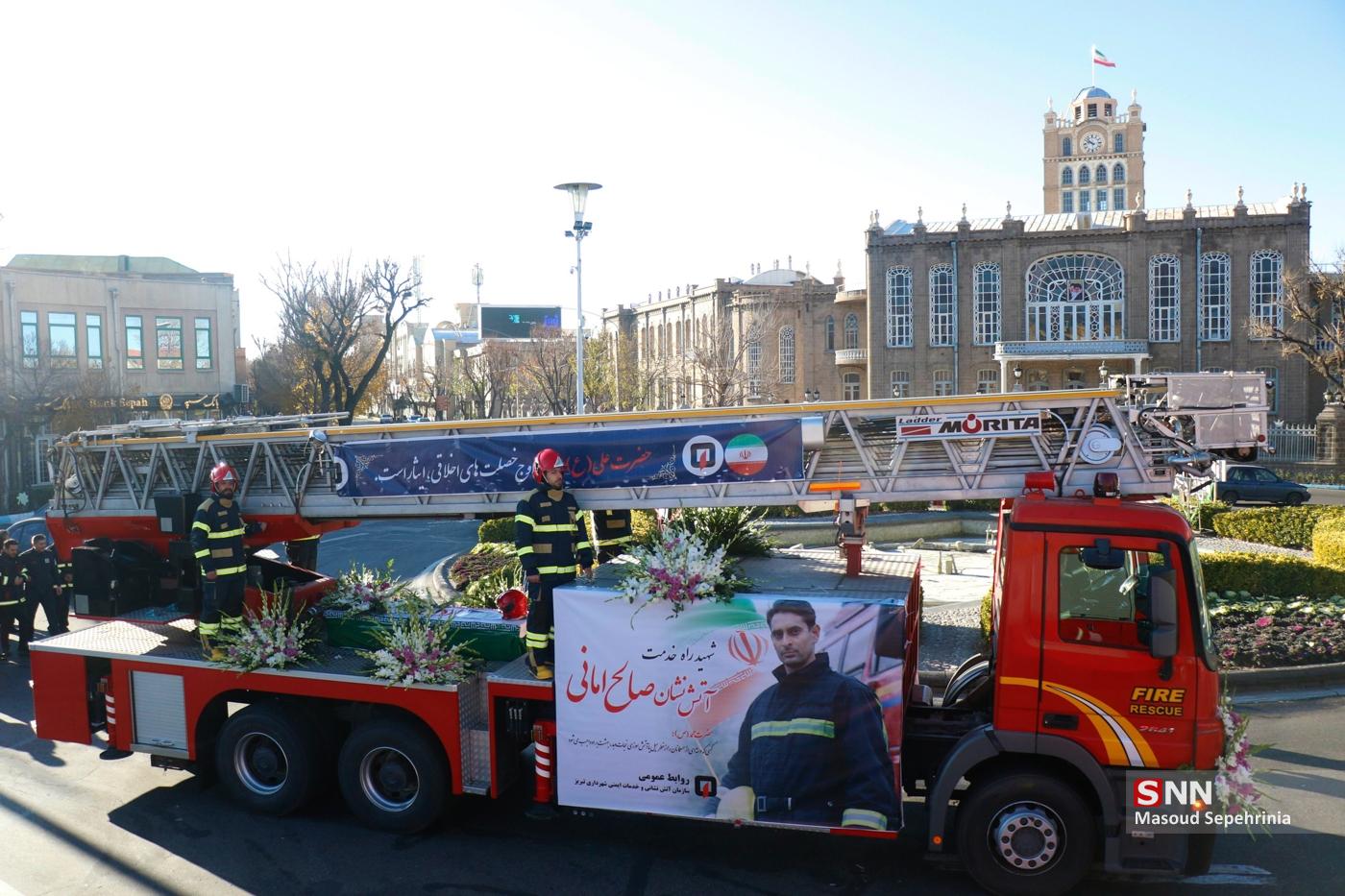 تشییع پیکر شهید آتش نشان صالح امانی در تبریز