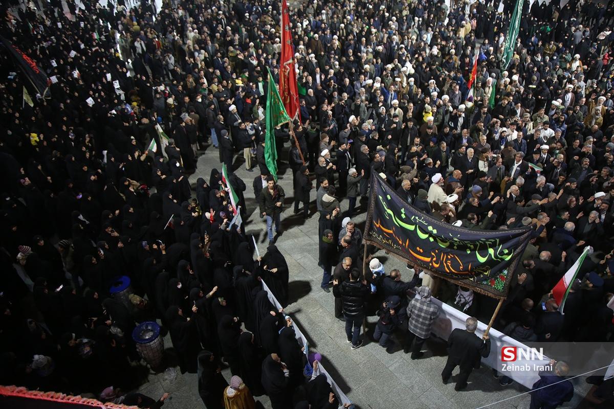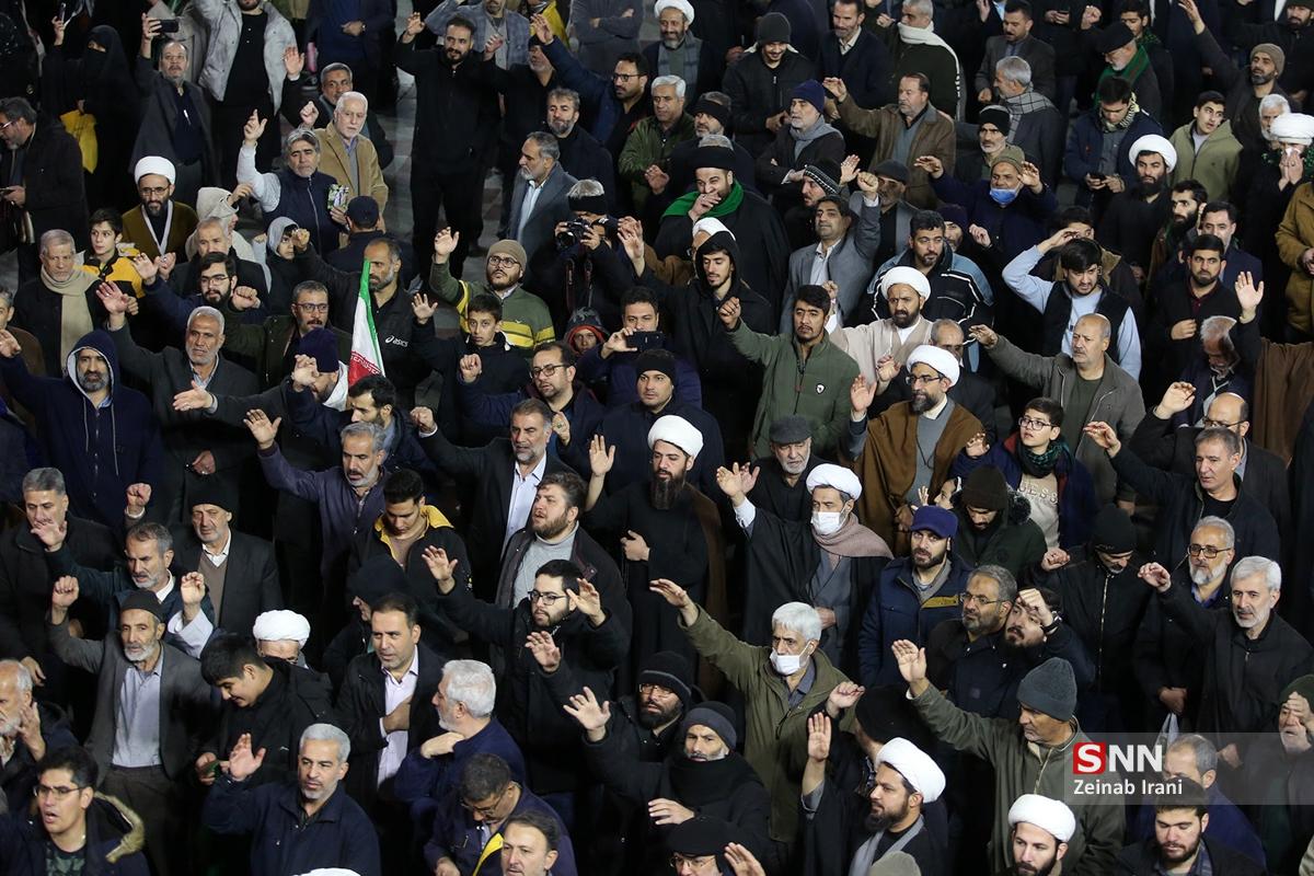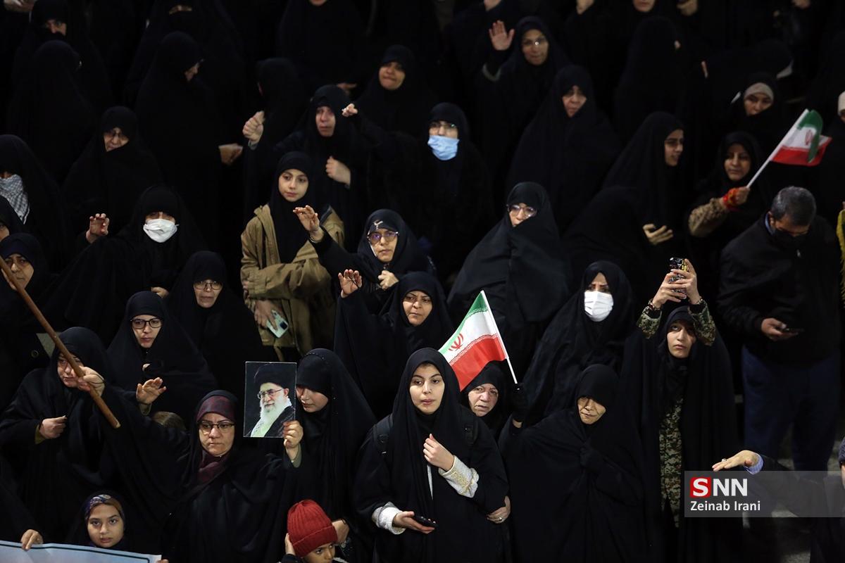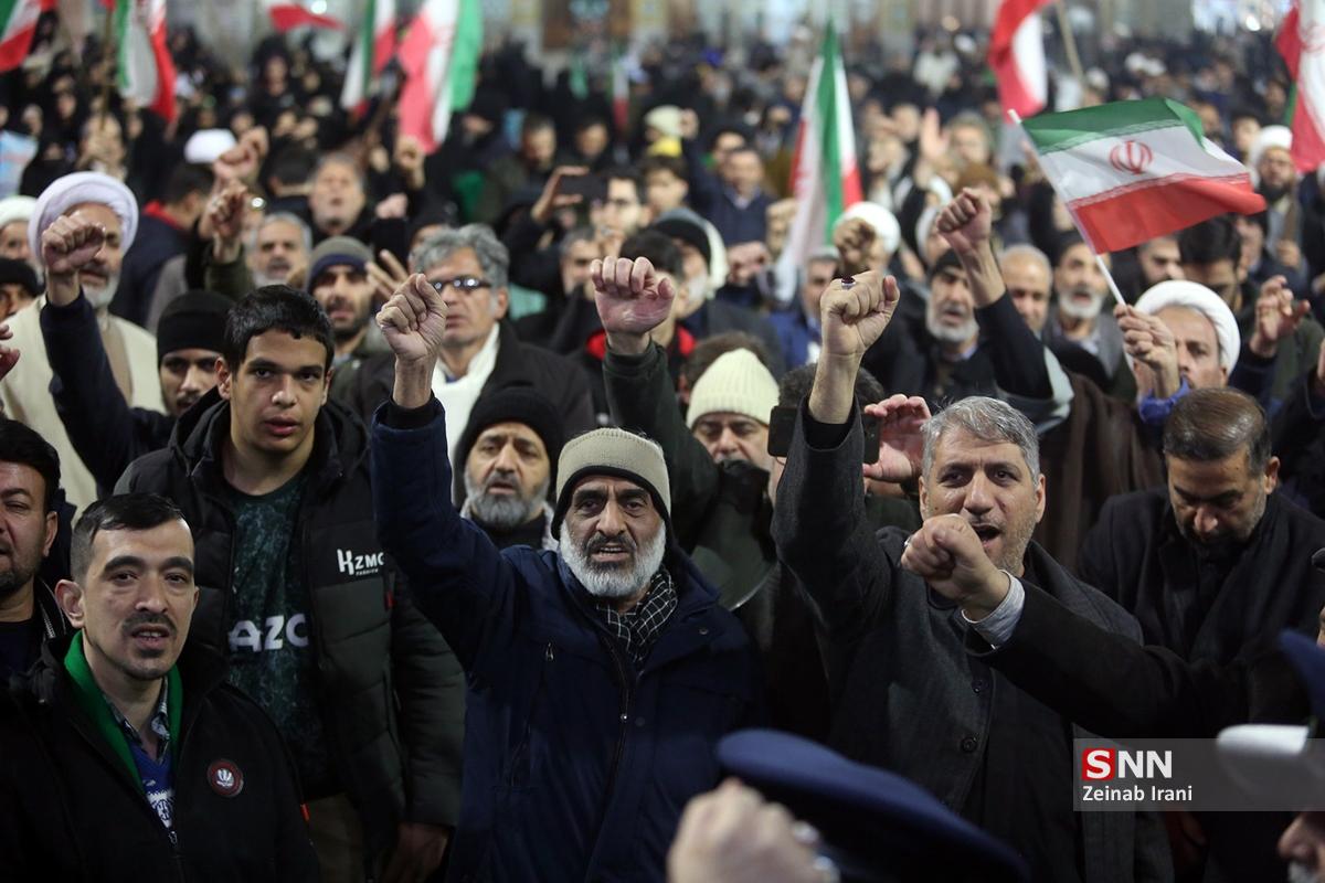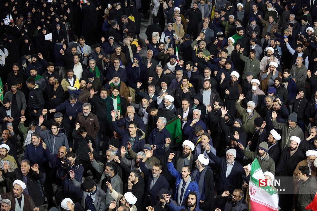 مردم انقلابی و همیشه در صحنه قم با همراهی هیئتهای مذهبی همزمان با شام شهادت حضرت زینب کبری سلام الله علیها با حضور پرشور علیه آشوبگران و برهم زنندگان نظم کشور تجمع و این اقدامات را محکوم کردند.