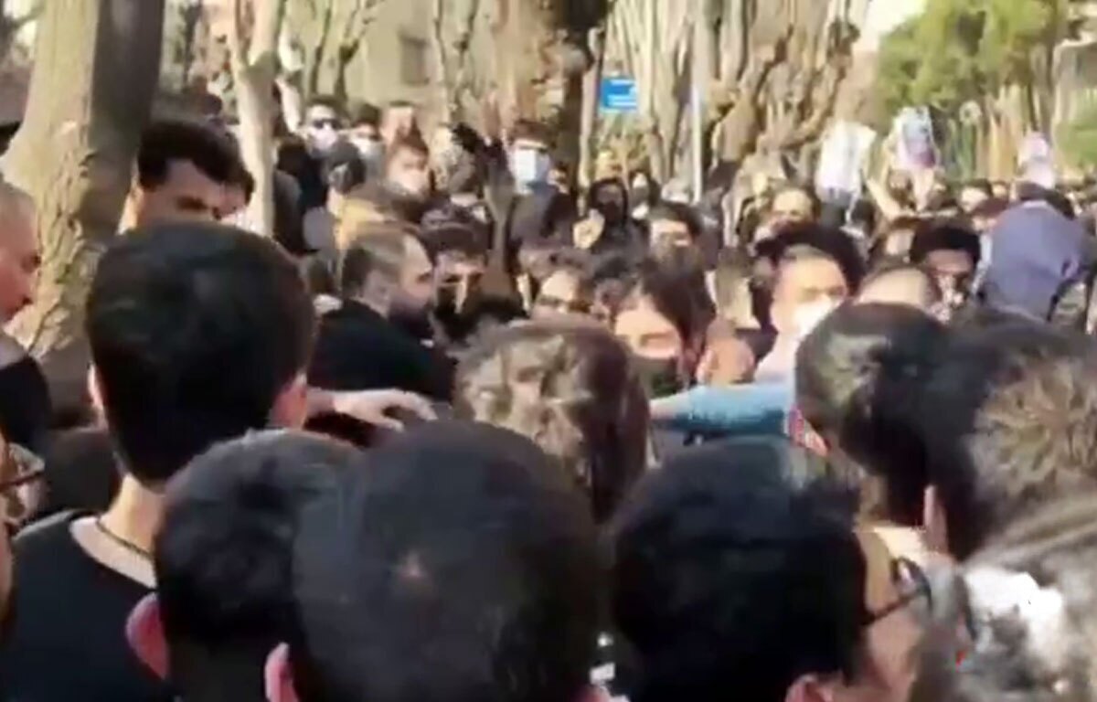 نمای نزدیک و واضح از پرتاب سنگ در دانشگاه شریف توسط دانشجونماها