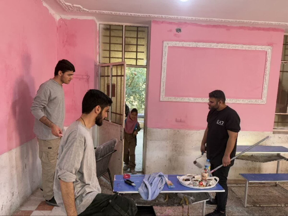 رنگ امید بر دیوارهای عین دو؛ جهادگران دانشگاه فرهنگیان فضای آموزشی منطقه محروم اهواز را بهسازی کردند