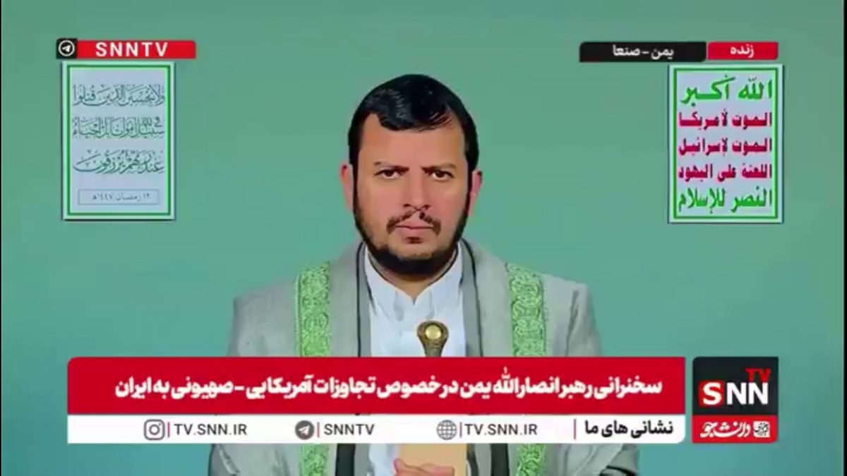 سیدعبدالملک بدرالدین حوثی در خصوص تجاوزات آمریکایی - صهیونی به ایران:ایران دائما بر موضع خود درباره فلسطین ایستاده است و مردم منطقه را کمک میکند.به مردم ایران و امت اسلامی که مصیبت شهادت آیت الله خامنهای به آنها وارد شده است تسلیت عرض میکنم؛ آنها خسارت بزرگی دیدند.طاغوتهای عصر که این جرم را مرتکب شدهاند برای طغیان بیشتر خود رهبر بزرگ انقلاب اسلامی را از سر راه خود برداشتند.آیت الله خامنهای تمام معاملات آنها را به هم میریخت و به کمک مستضعفین میرفت و آنها را از طغیانی که وجود داشت آزاد میکرد.