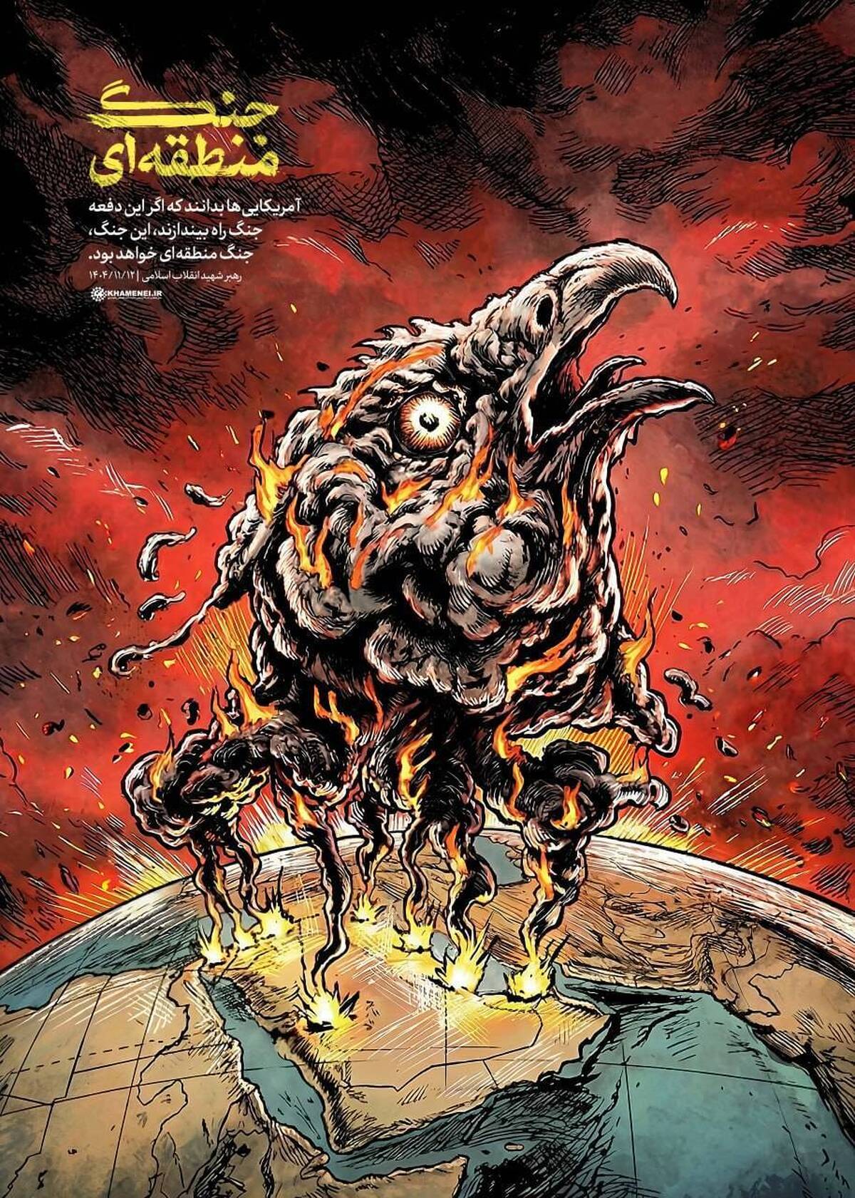 پوستر تاکید رهبر شهید انقلاب رضوان‌الله‌علیه بر وقوع جنگ منطقه‌ای پس از تجاوز آمریکا به ایران عزیز منتشر شد.