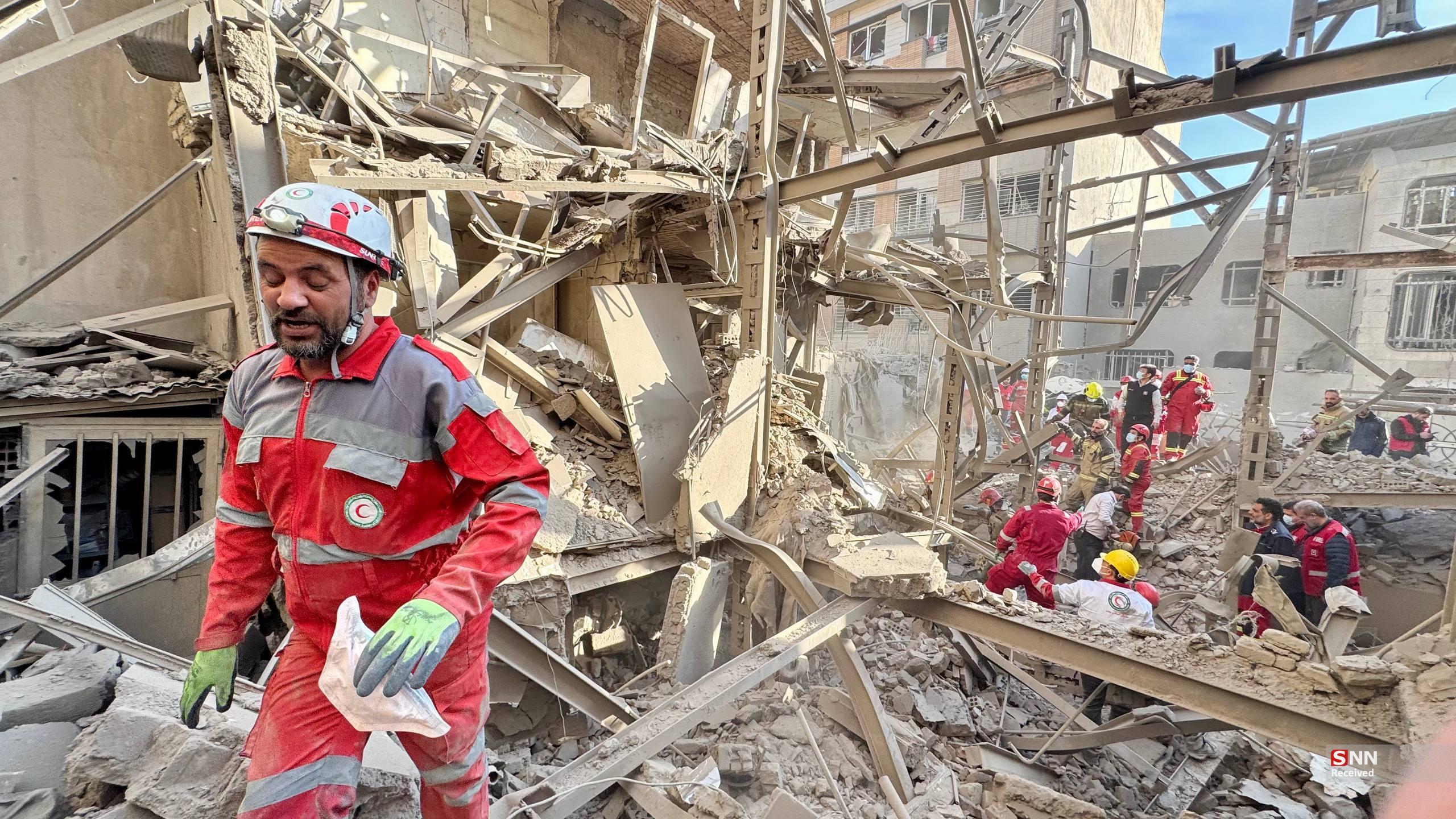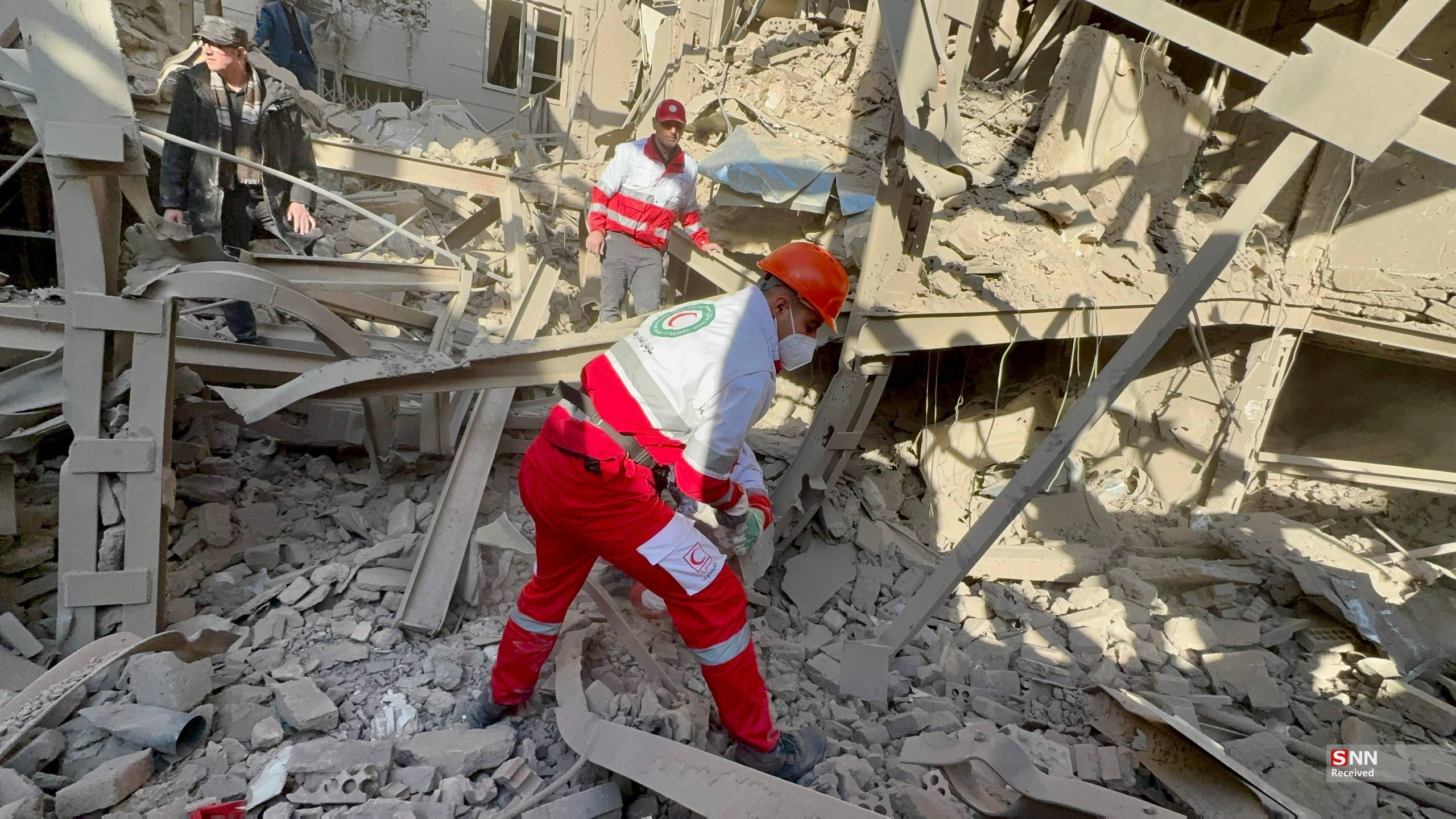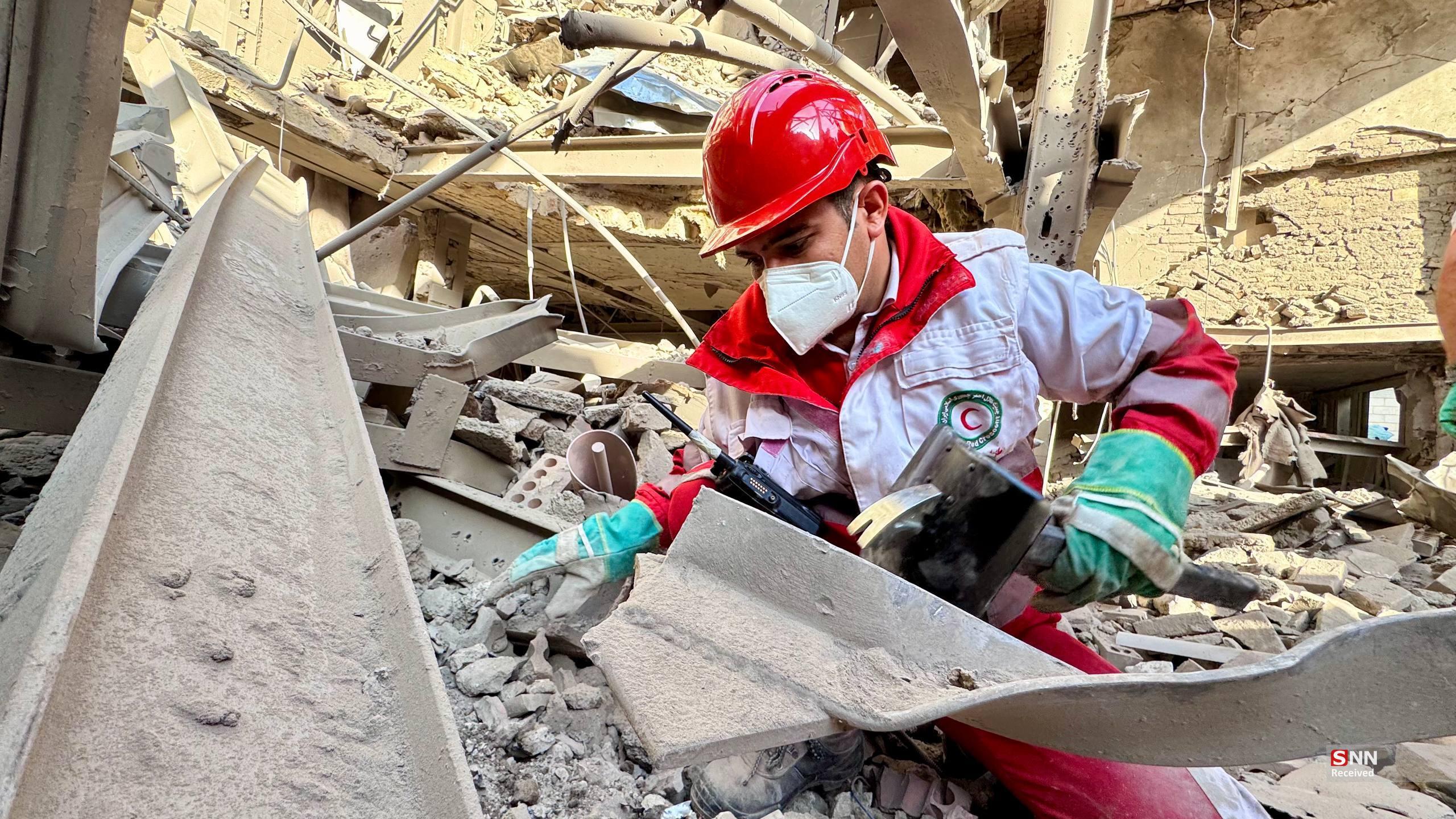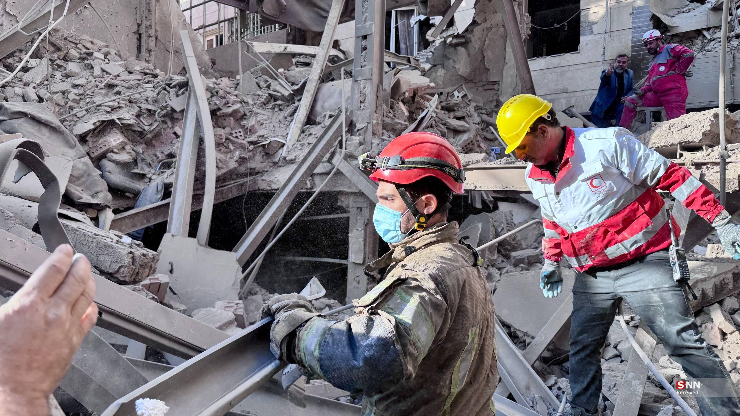 تلاش نیروهای امدادی بعد از حملات آمریکایی - صهیونیستی به مناطق مسکونی
