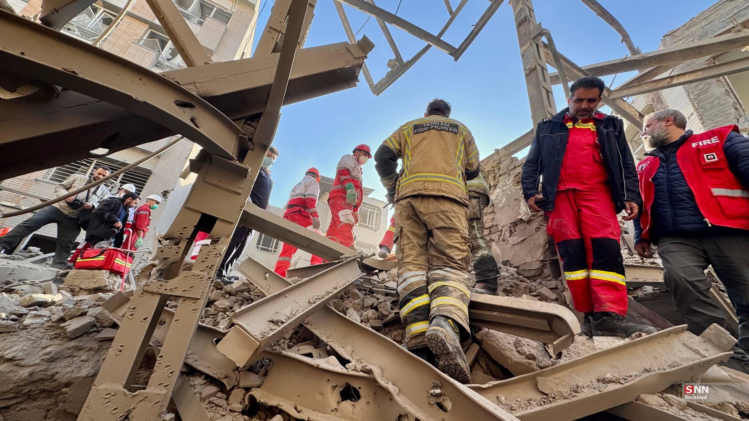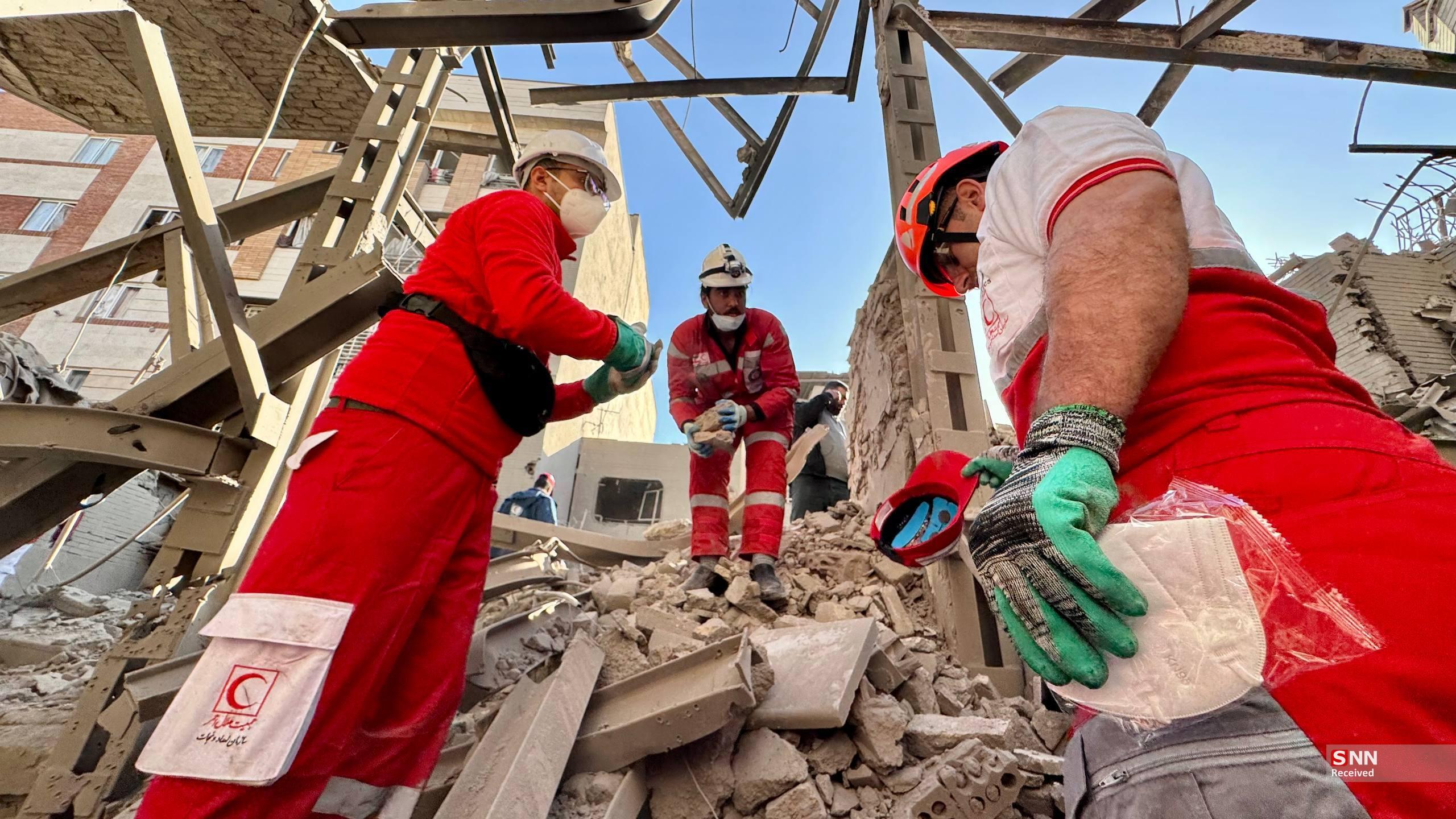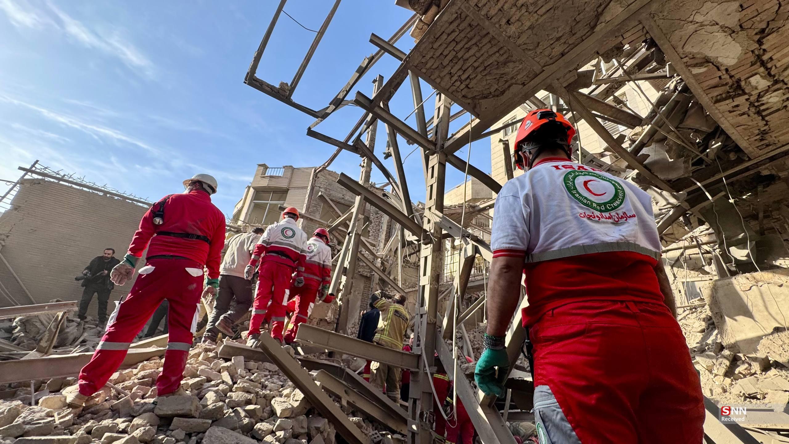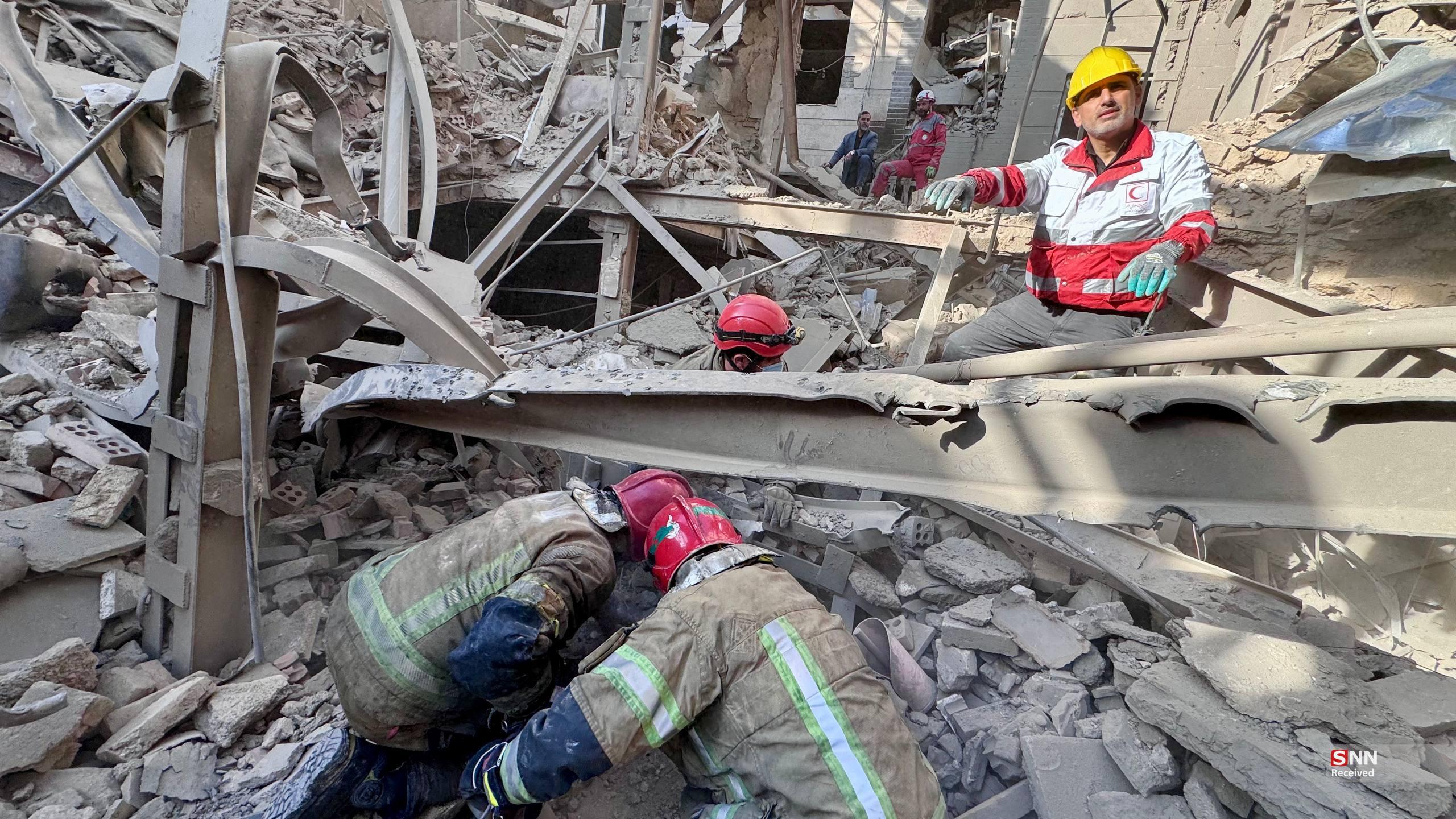 تلاش نیروهای امدادی بعد از حملات آمریکایی - صهیونیستی به مناطق مسکونی