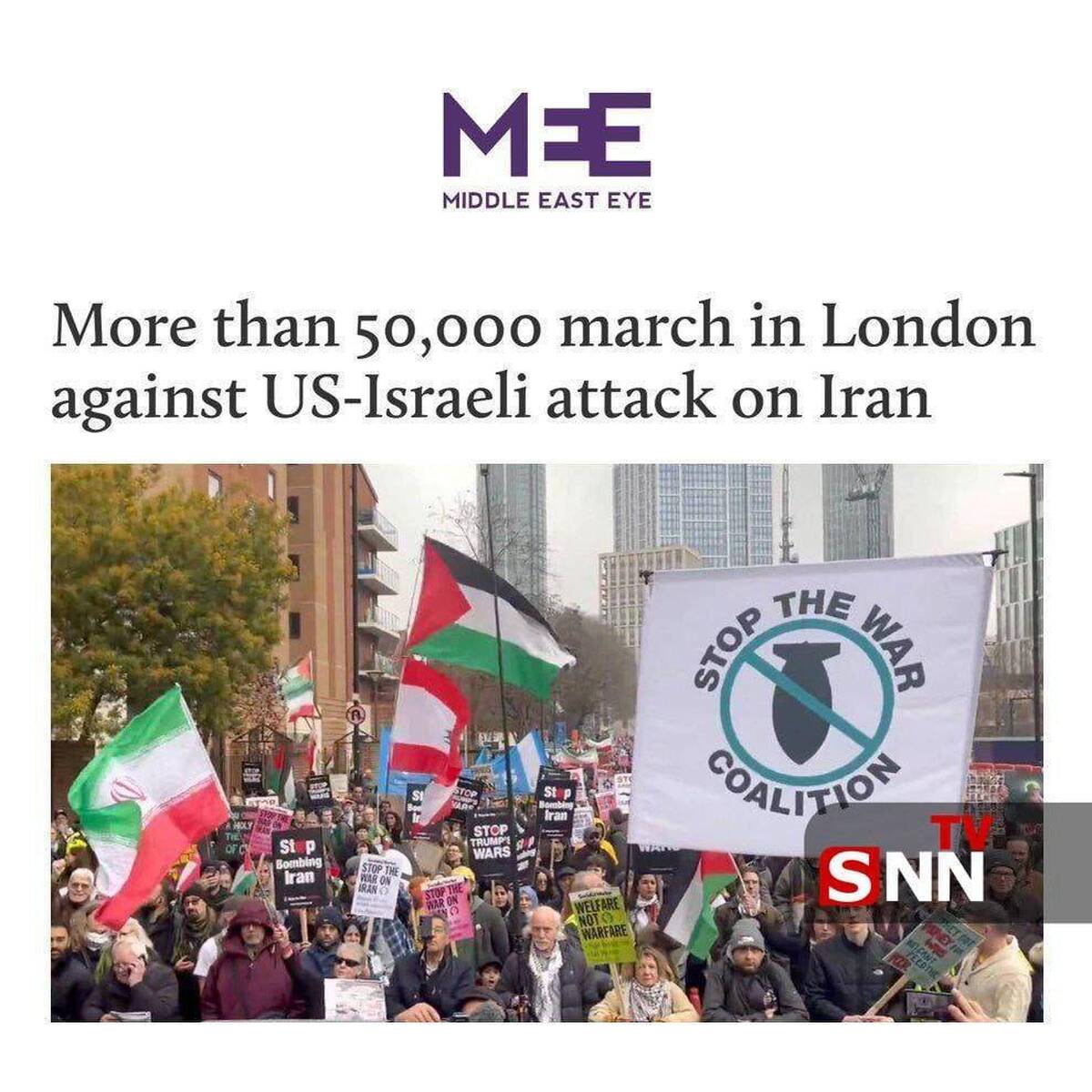 میدل ایست آی: بیش از ۵۰ هزار نفر در تجمع حمایت از ایران در لندن شرکت کردند