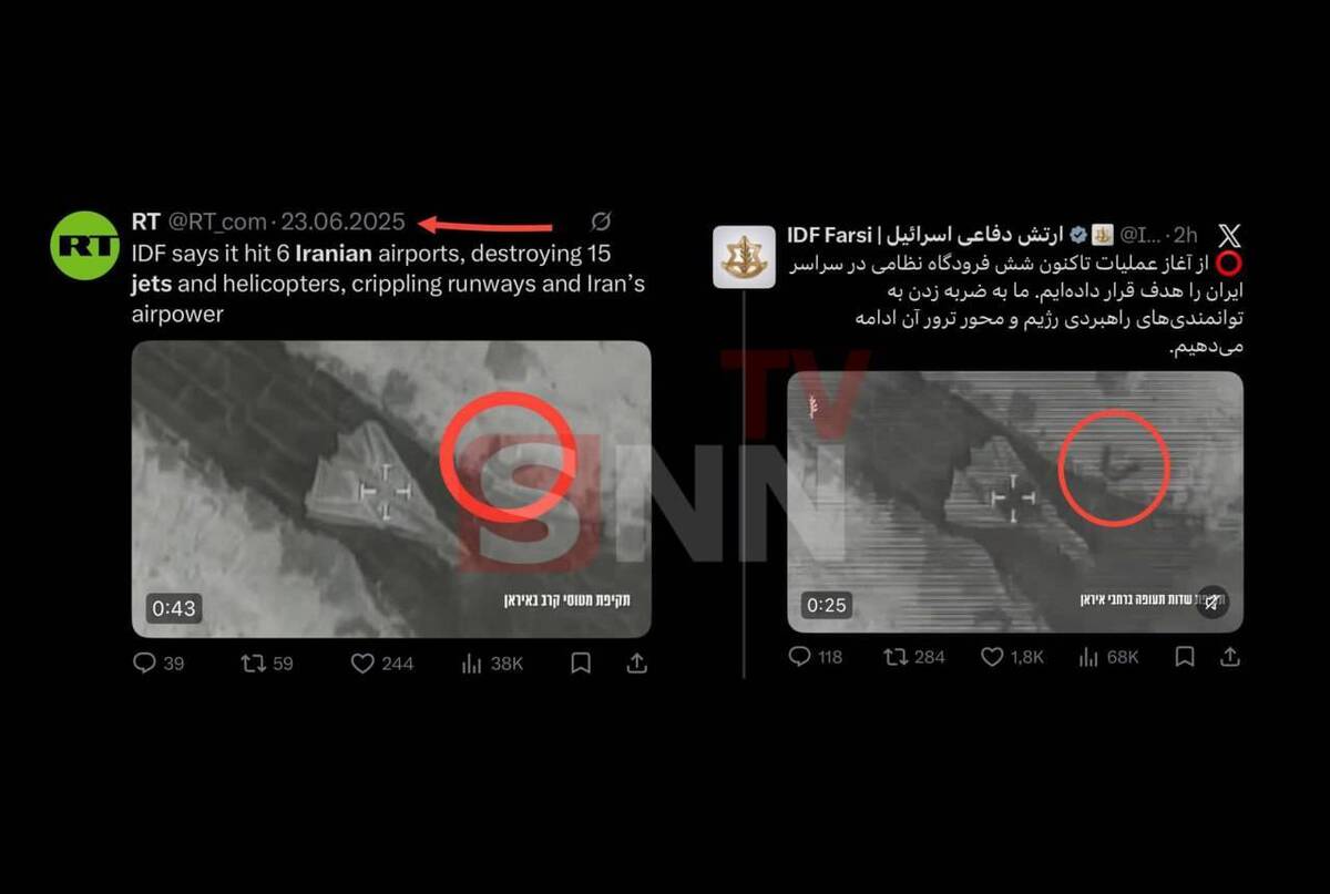 صفحه رسمی ارتش رژیم مدعی هدف قرار دادن جنگنده های ایرانی طی جنگ رمضان شد این درحالی است که عکس استفاده شده در صفحه ارتش این دشمن در جنگ ۱۲ روزه در صفحه رویترز منتشر شده بود.