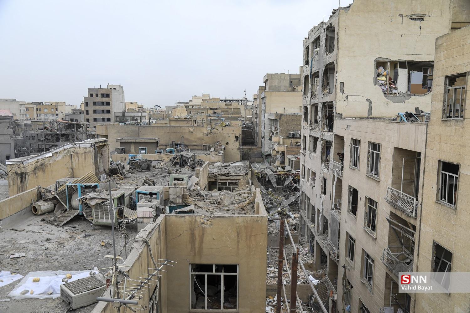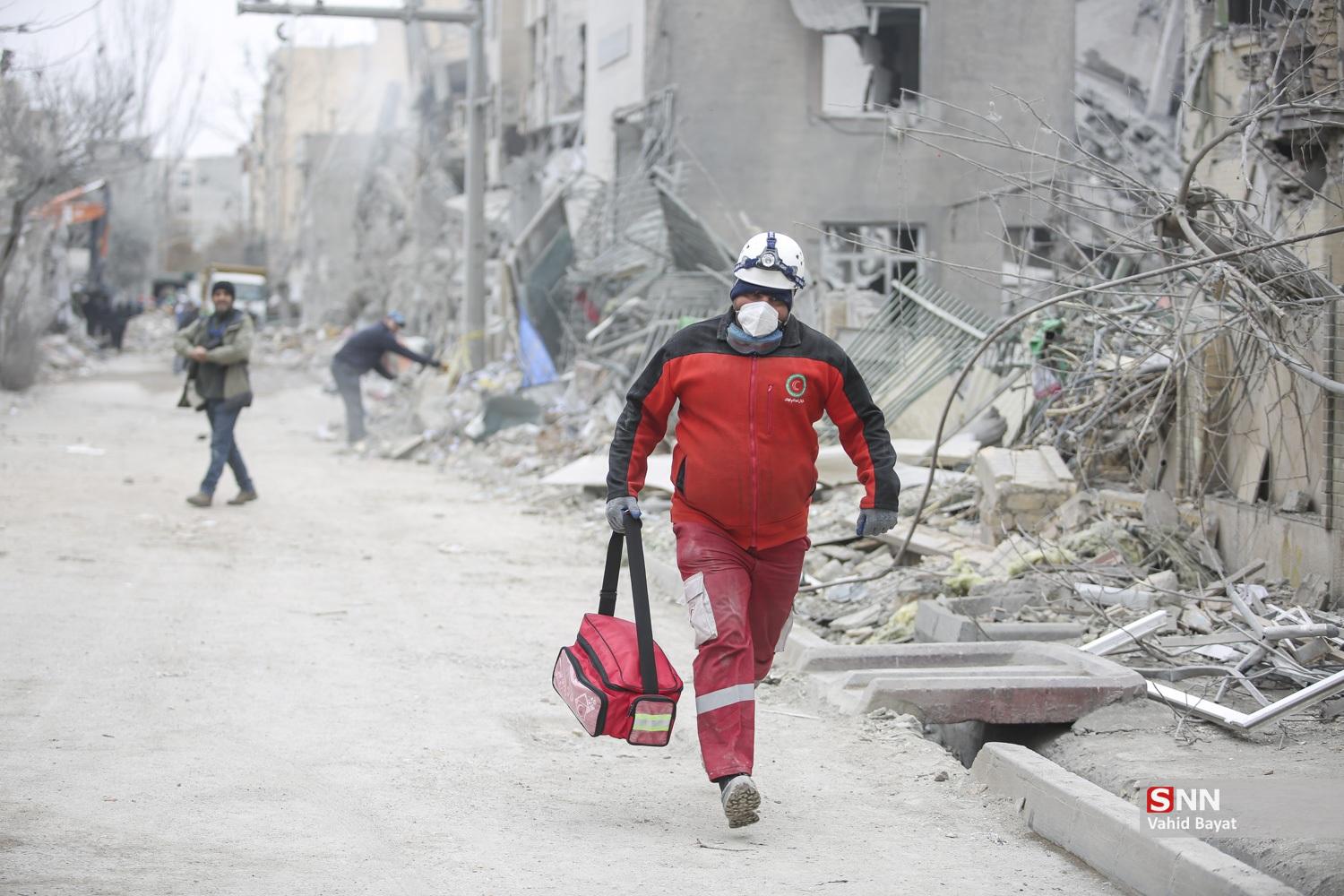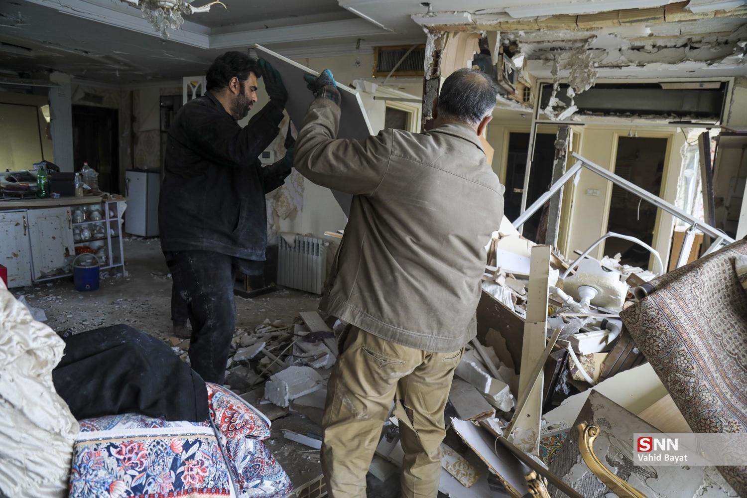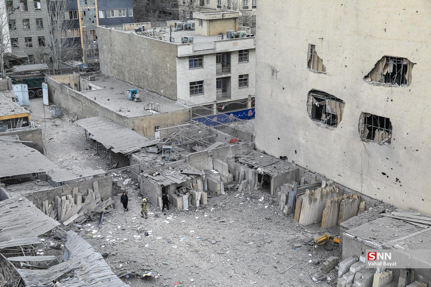 آواربرداری از ساختمان مورد اصابت در حوالی میدان رسالت