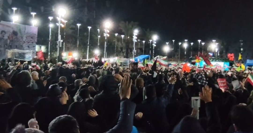 حضور حماسی مردم رشت در میدان تا پیروزی بر دشمنان ایران/ نوای حیدر حیدر رشتوندان در بدرقه شهدای گیلانی ناو جماران+فیلم
