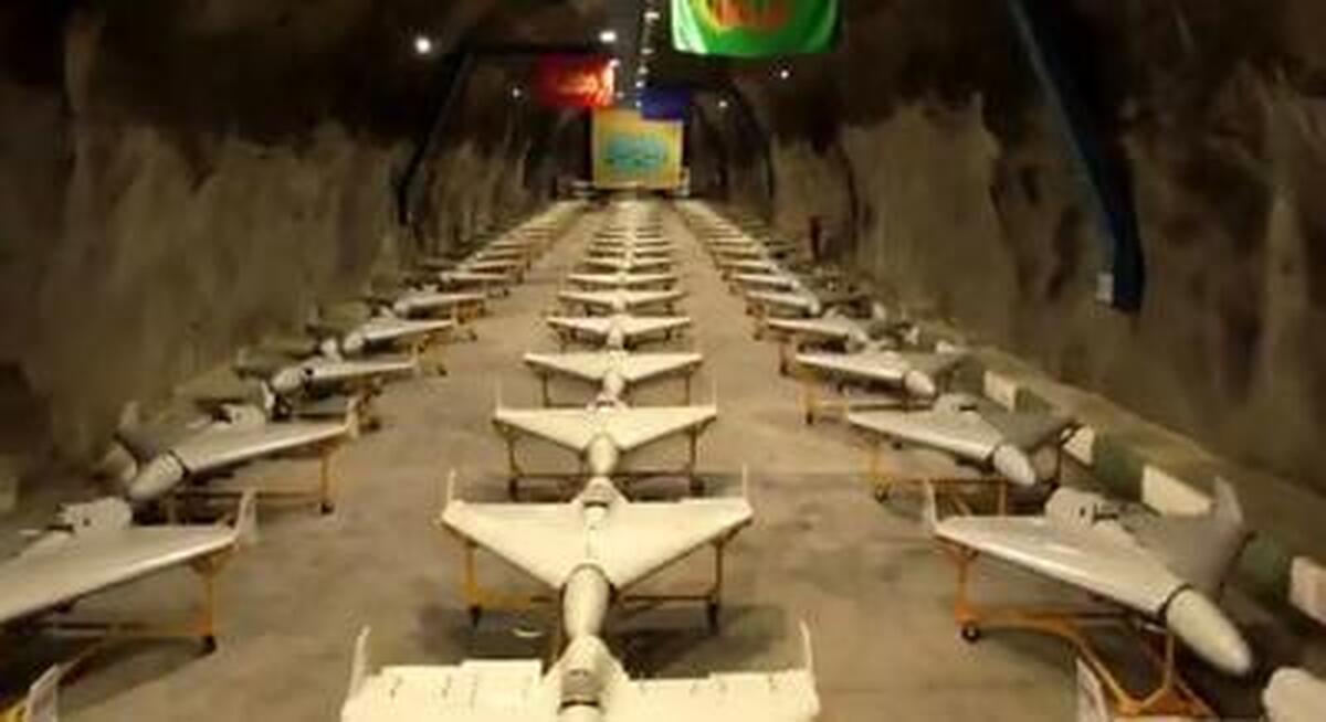سپاه پاسداران انقلاب اسلامی مجموعهای از پهپادهای خود را در یک تونل بزرگ به نمایش میگذارد.