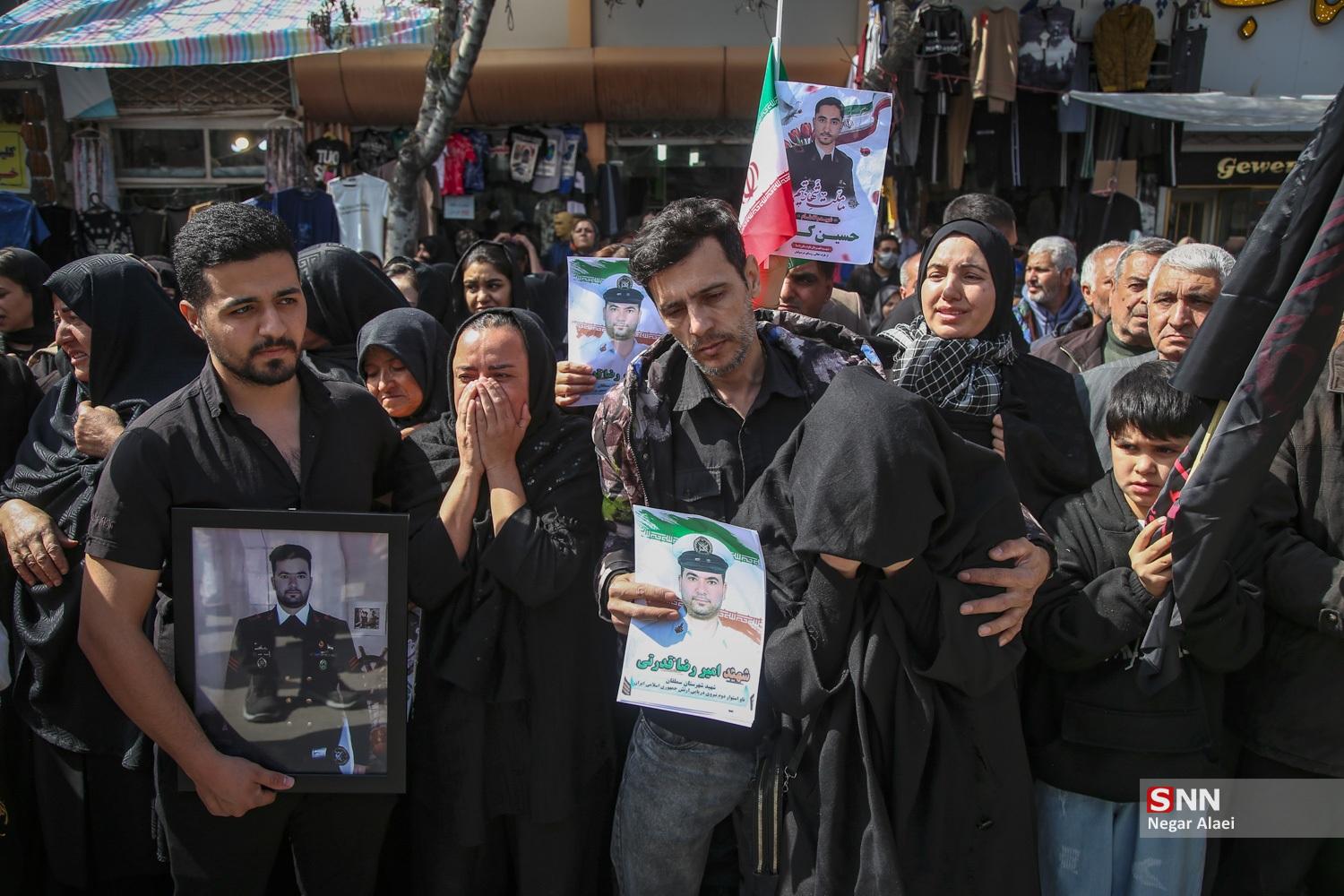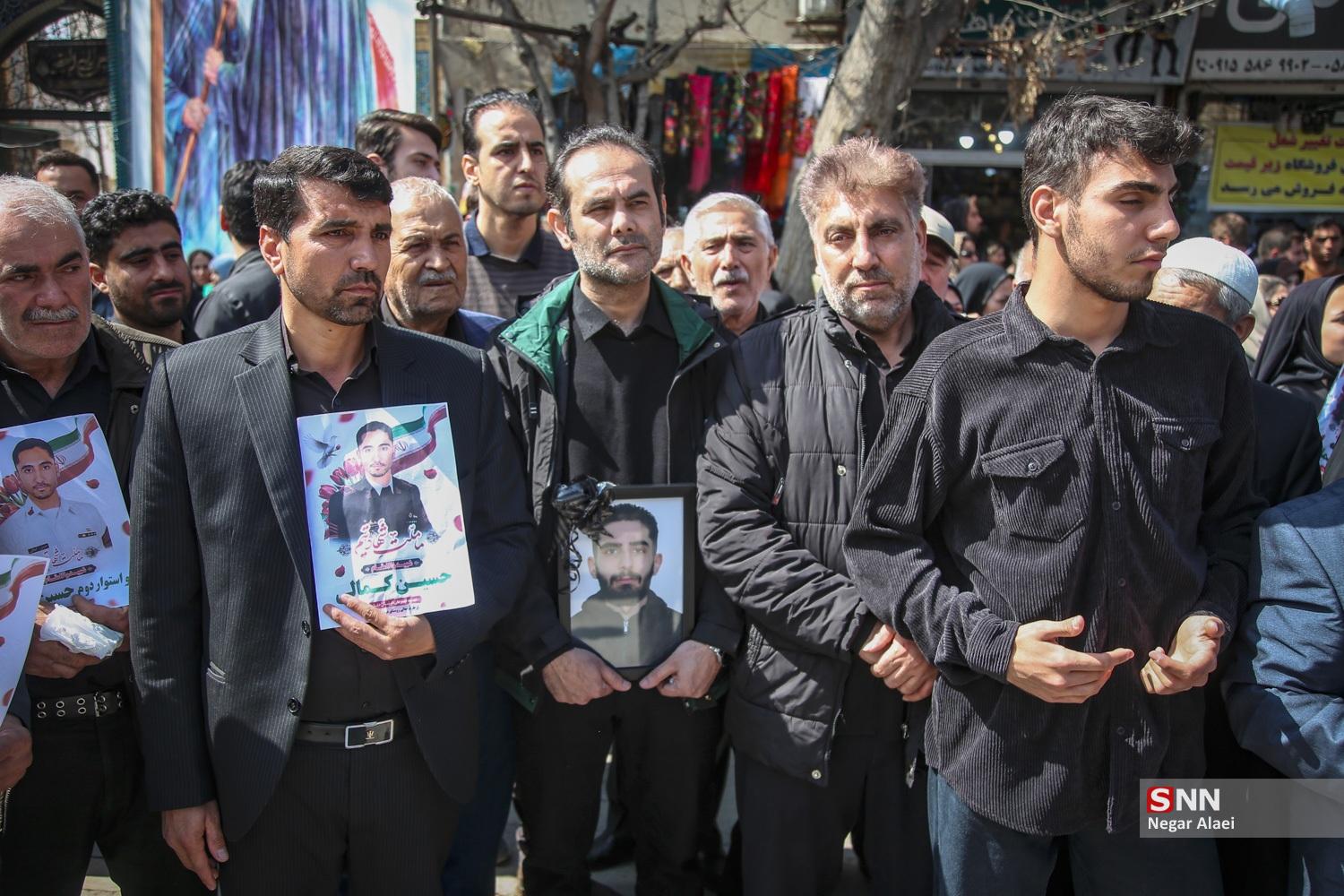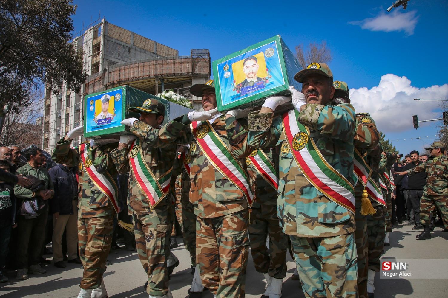 مردم بجنورد امروز پیکر پاک شهیدان حسین کمالی، یونس نظرزاده و امیررضا قدرتی از شهدای دریادل ناو دنا و شهید امیرآرمان لنگری از شهدای مردمی را بر روی دستان خود تشییع کردند.
