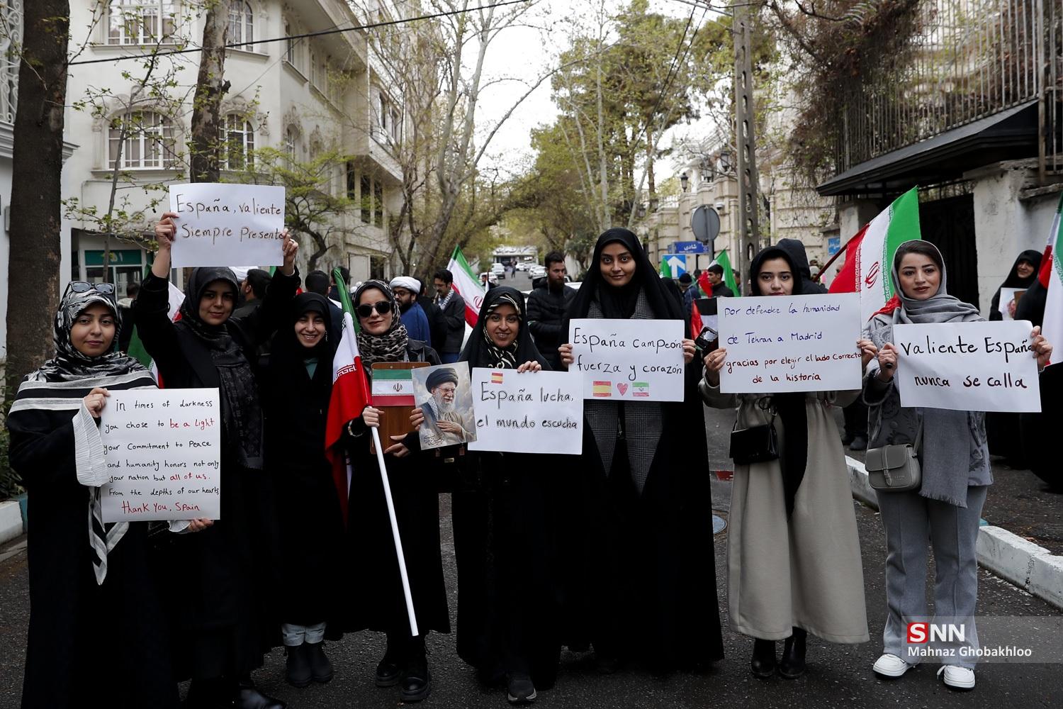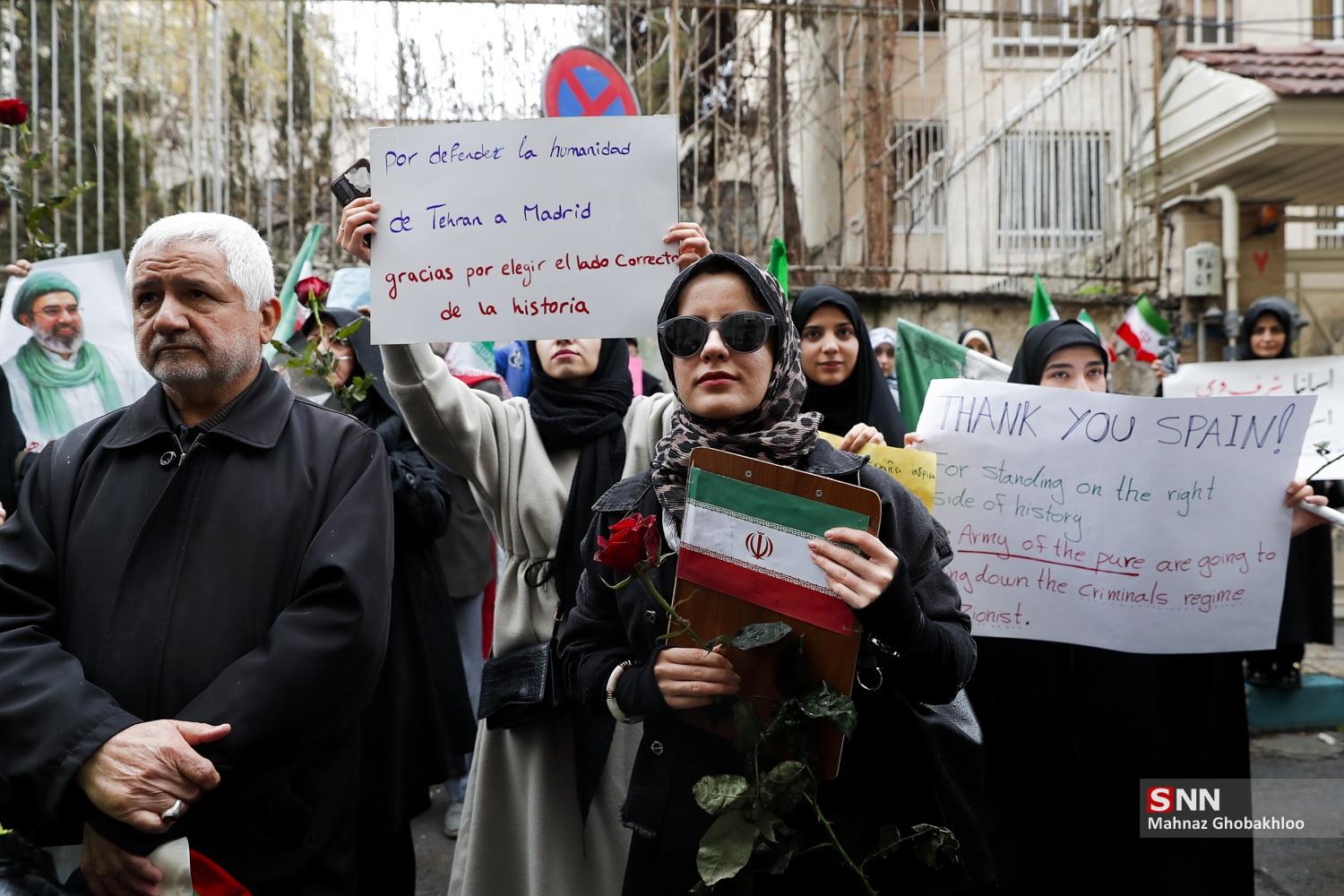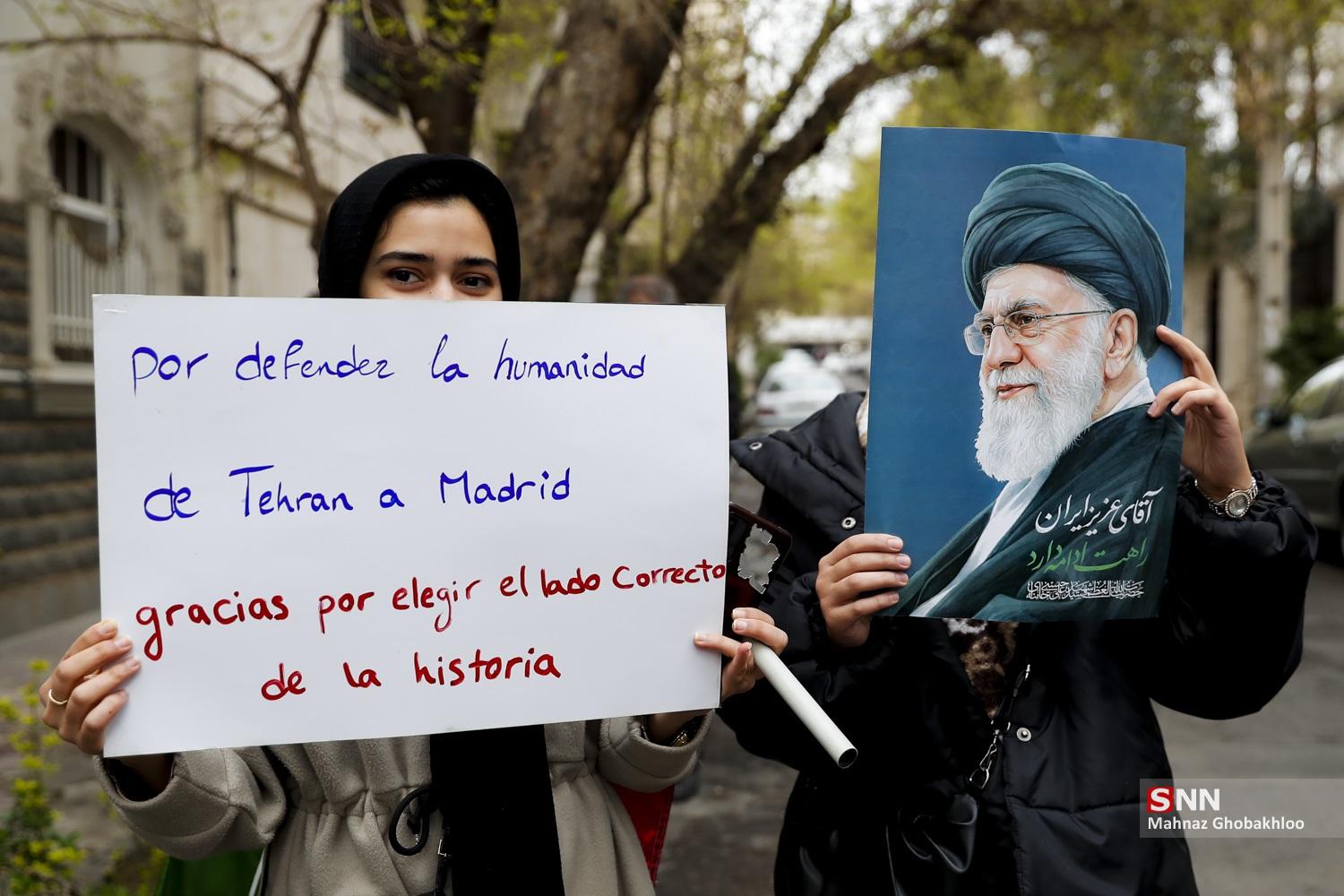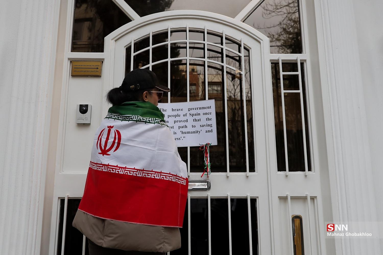 تجمع دانشجویی مقابل سفارت اسپانیا در تهران