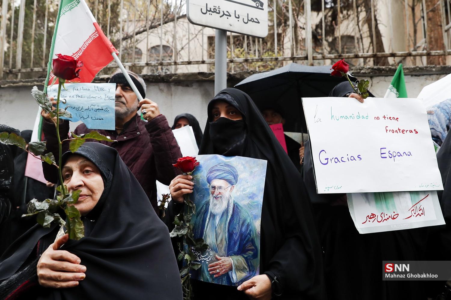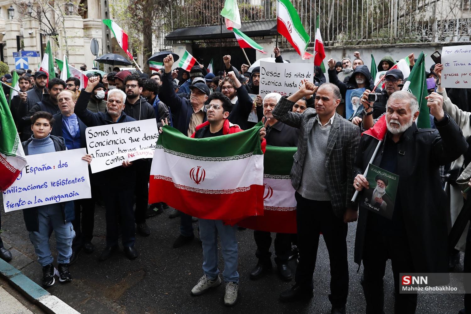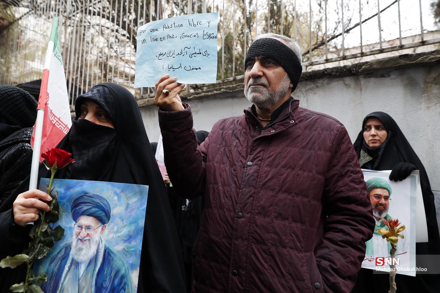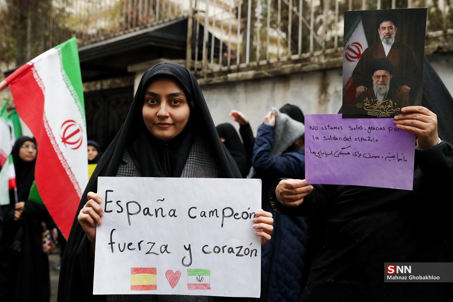 تجمع دانشجویی مقابل سفارت اسپانیا در تهران