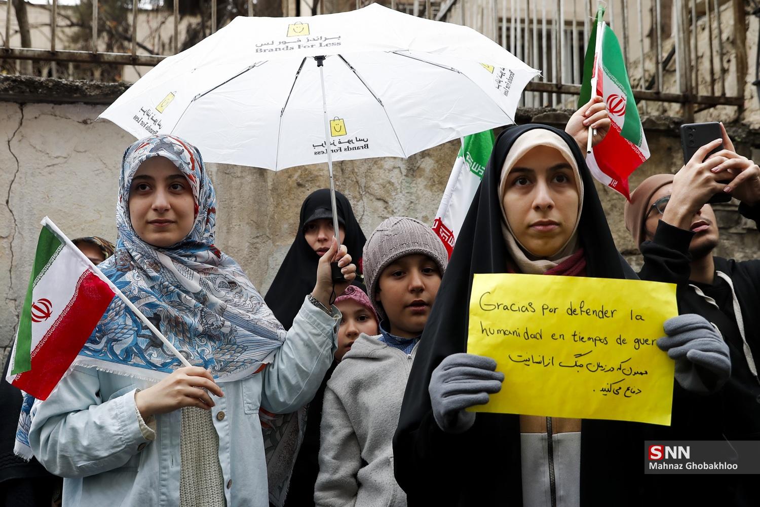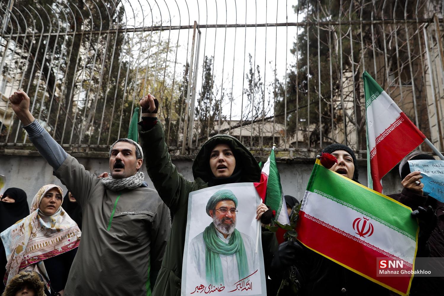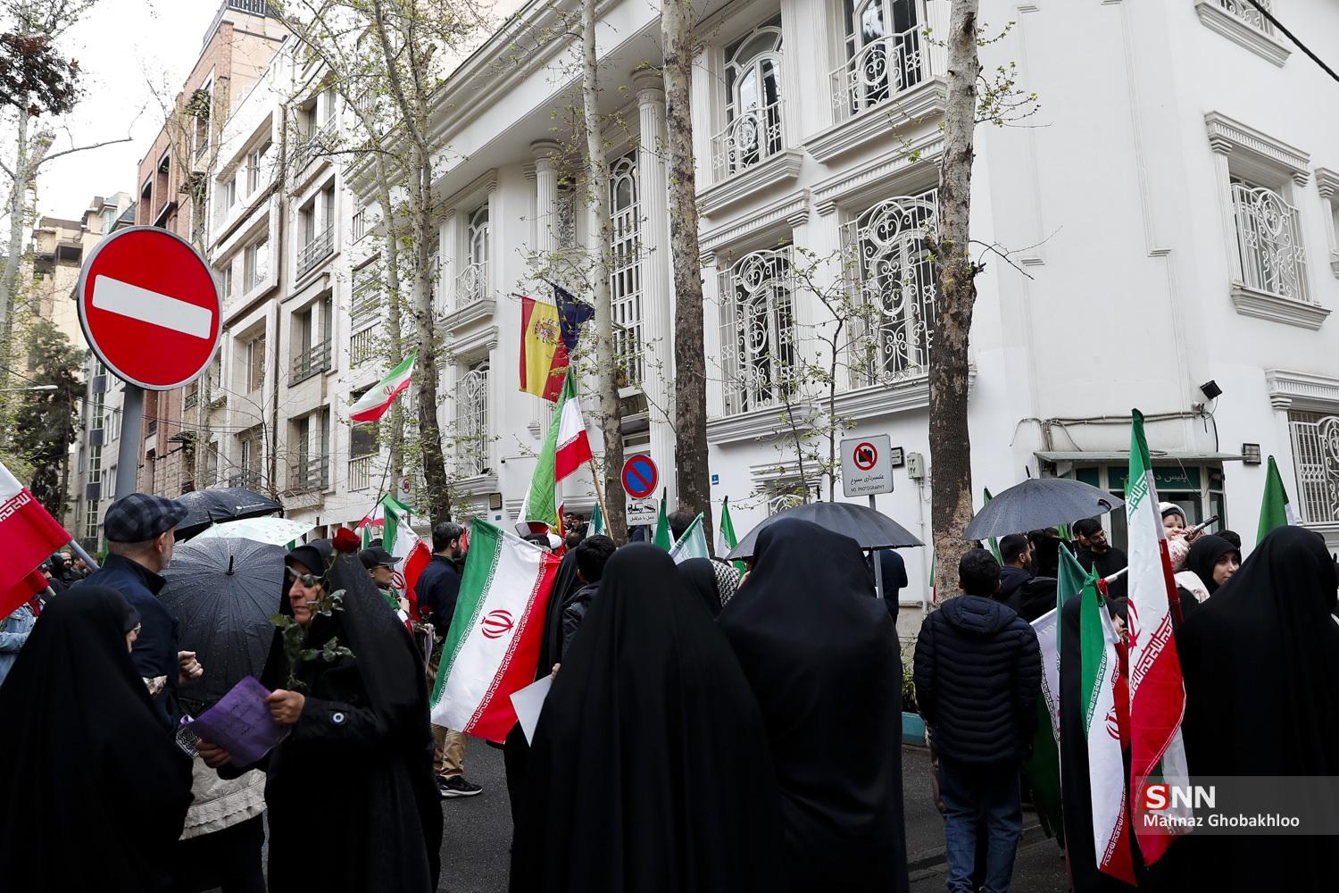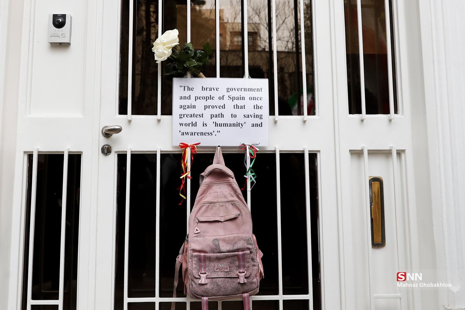 تجمع دانشجویی مقابل سفارت اسپانیا در تهران