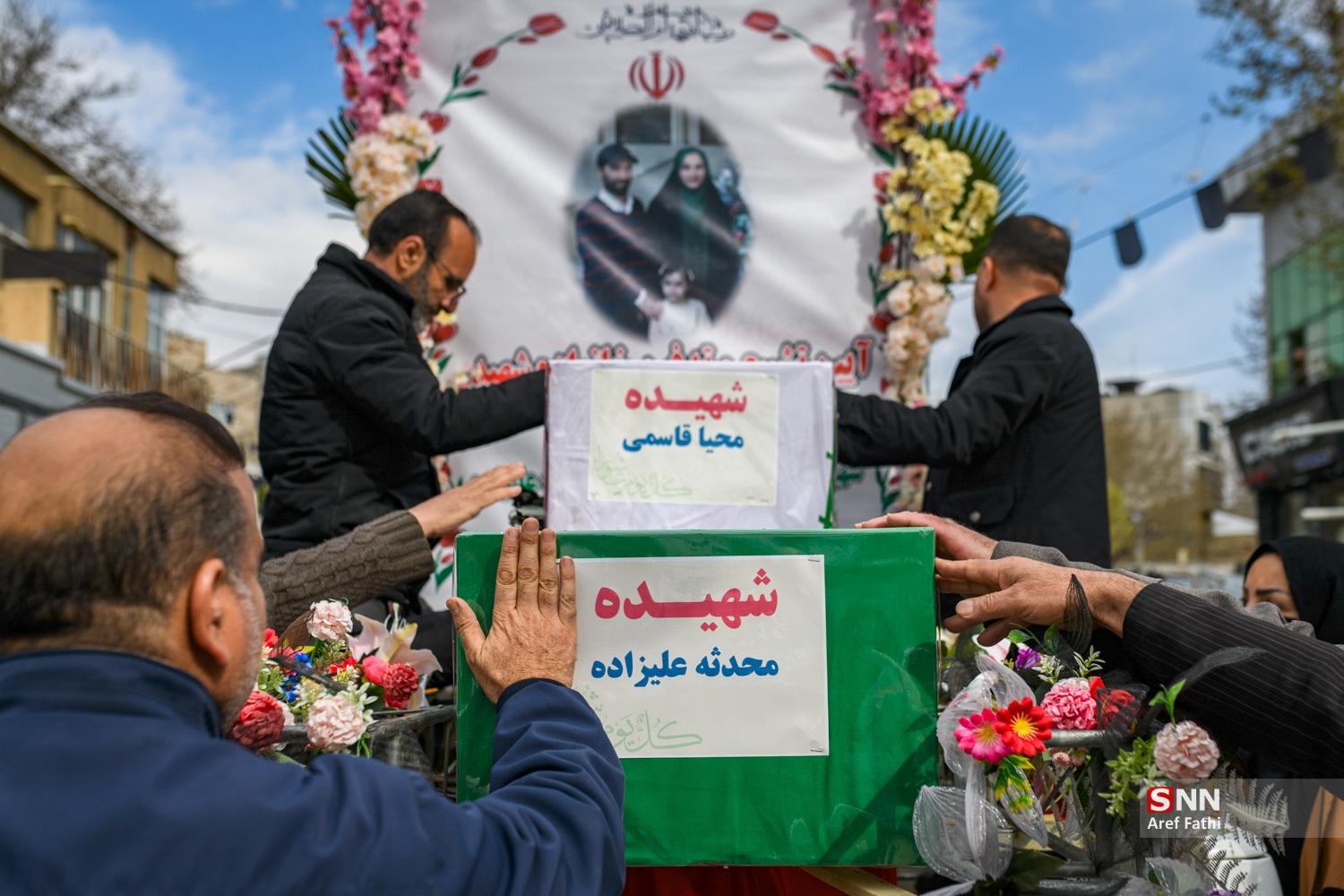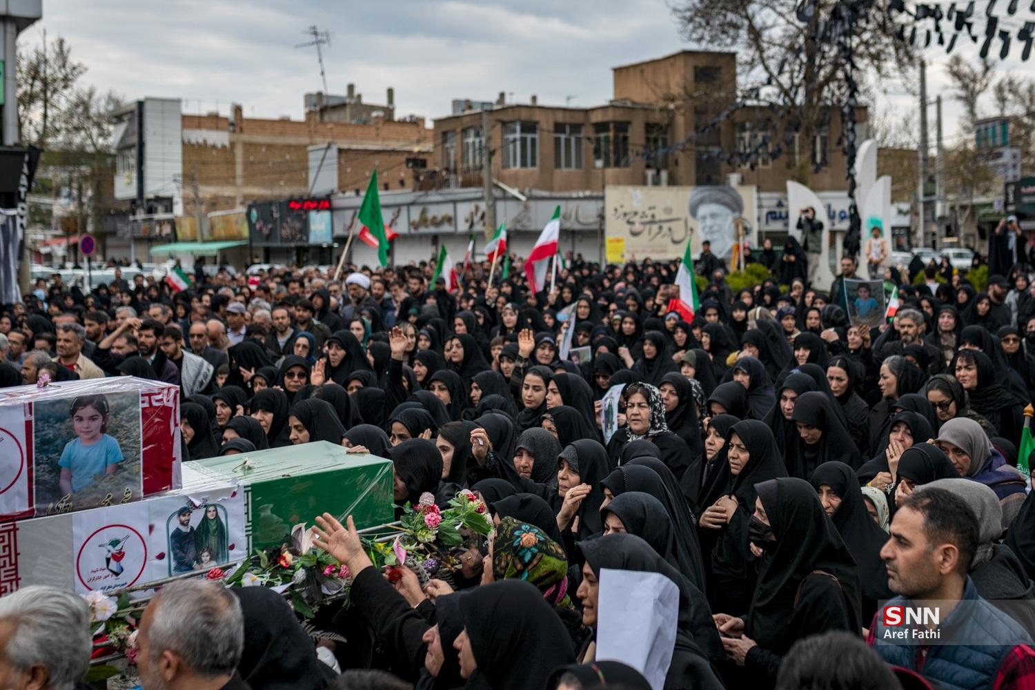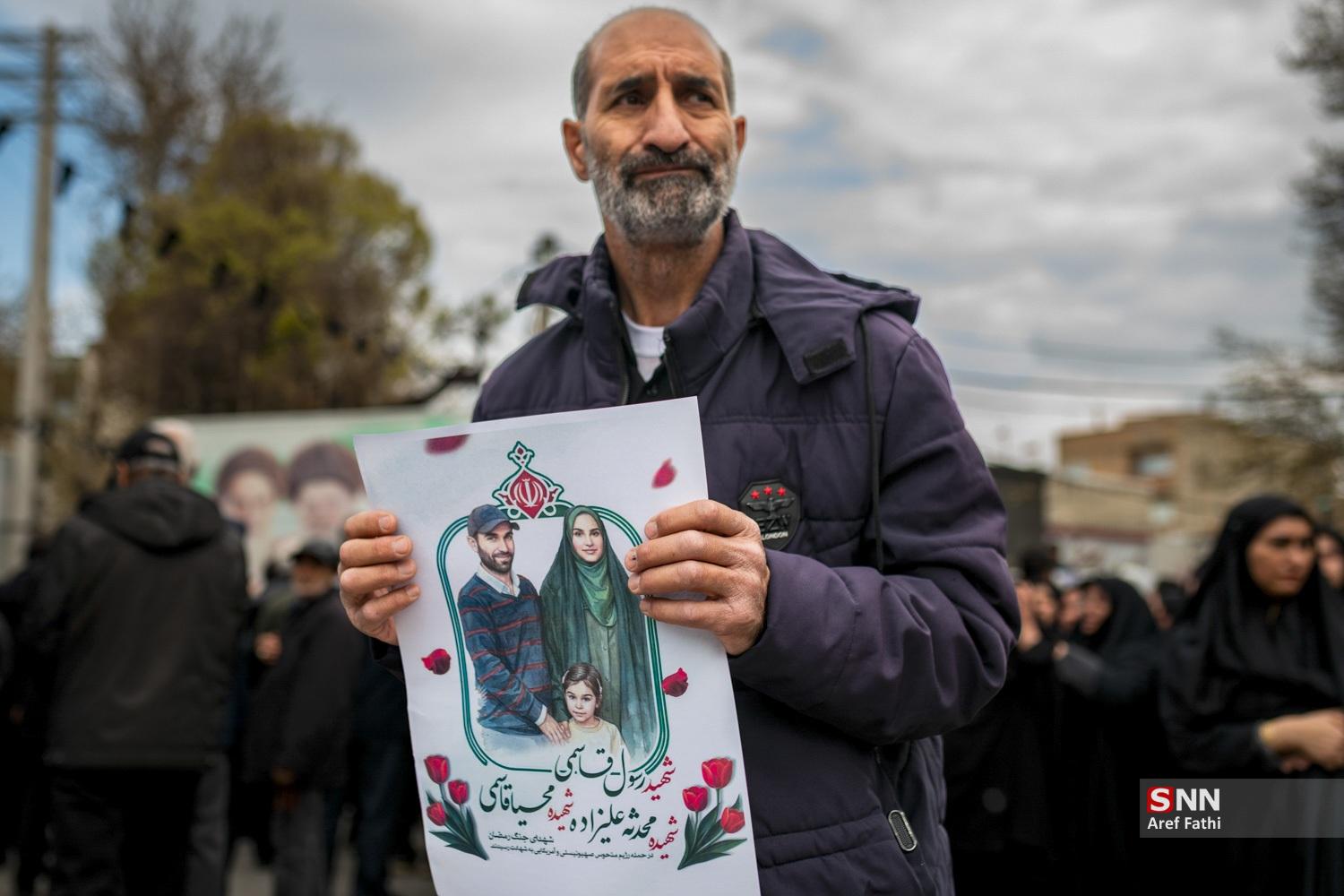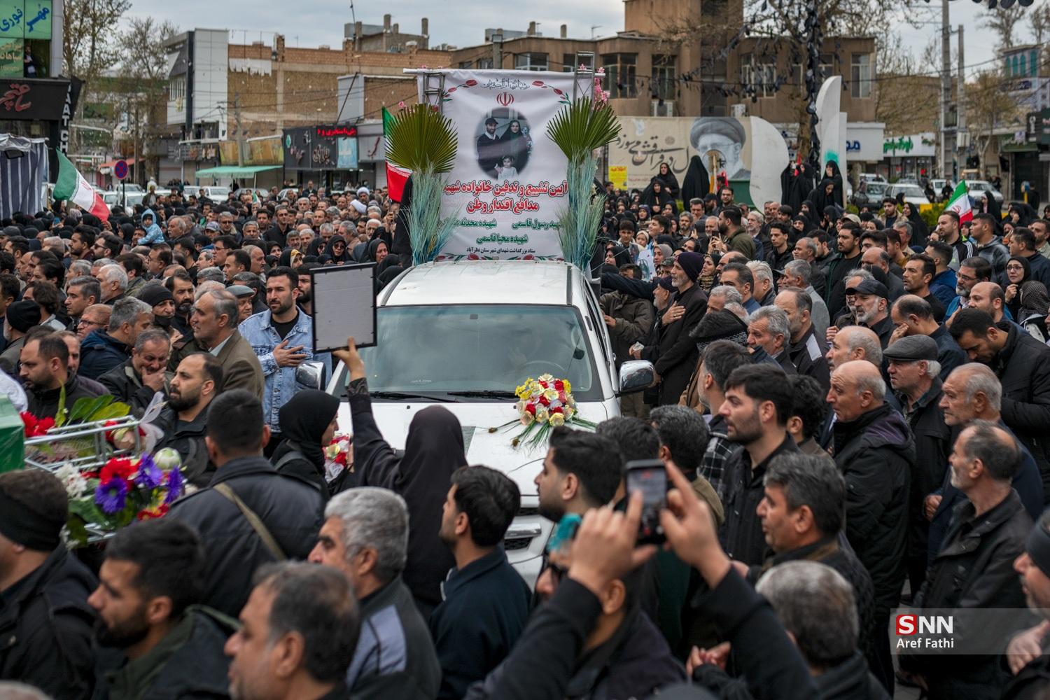 تشییع پیکر خانواده سه نفره رسول قاسمی، شهیده محدثه علیزاده و شهیده محیا قاسمی که در حملات آمریکایی - اسرائیلی به شهادت رسیدهاند امروز یکشنبه ۹ فروردین ماه در شهرستان نظرآباد برگزار شد.