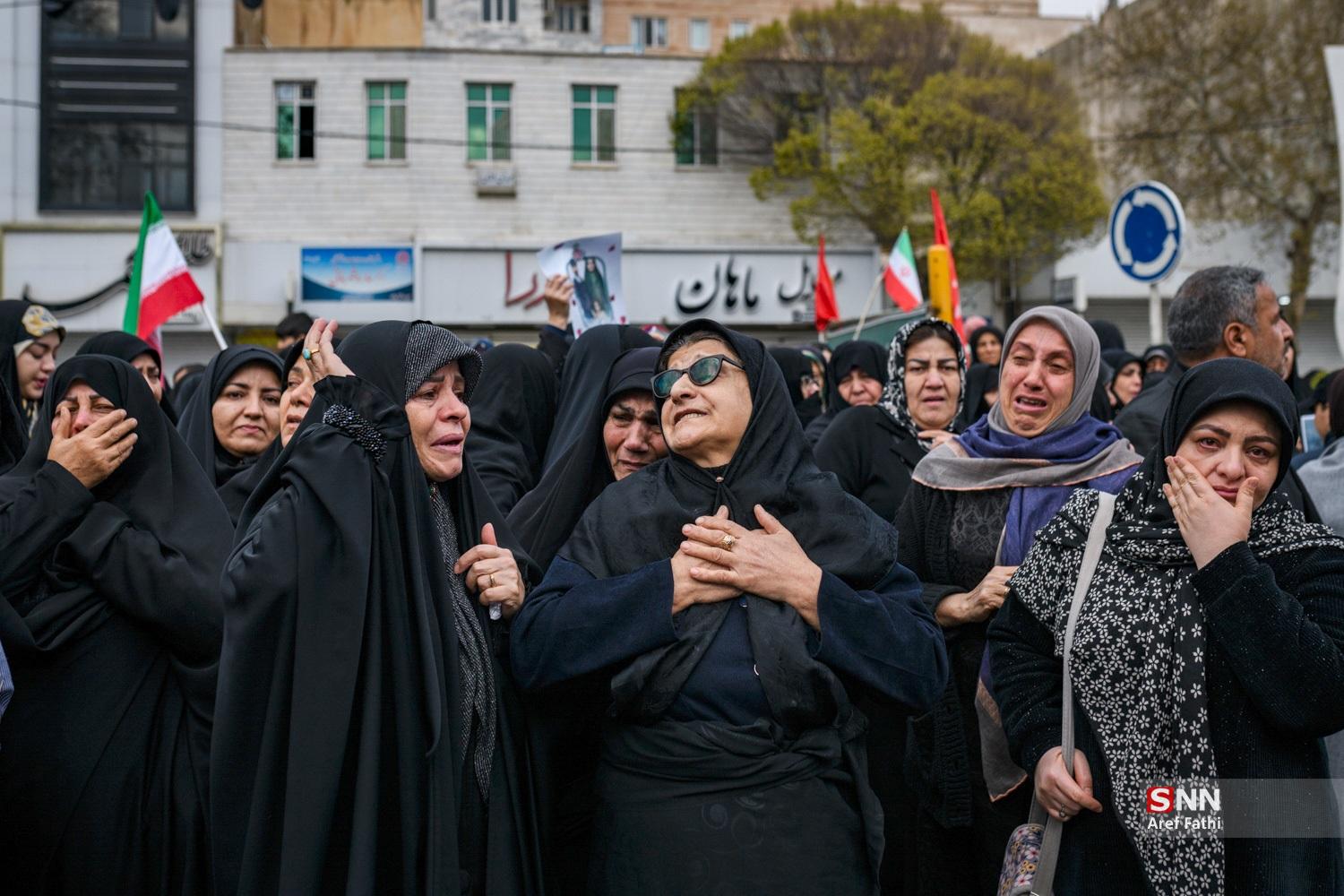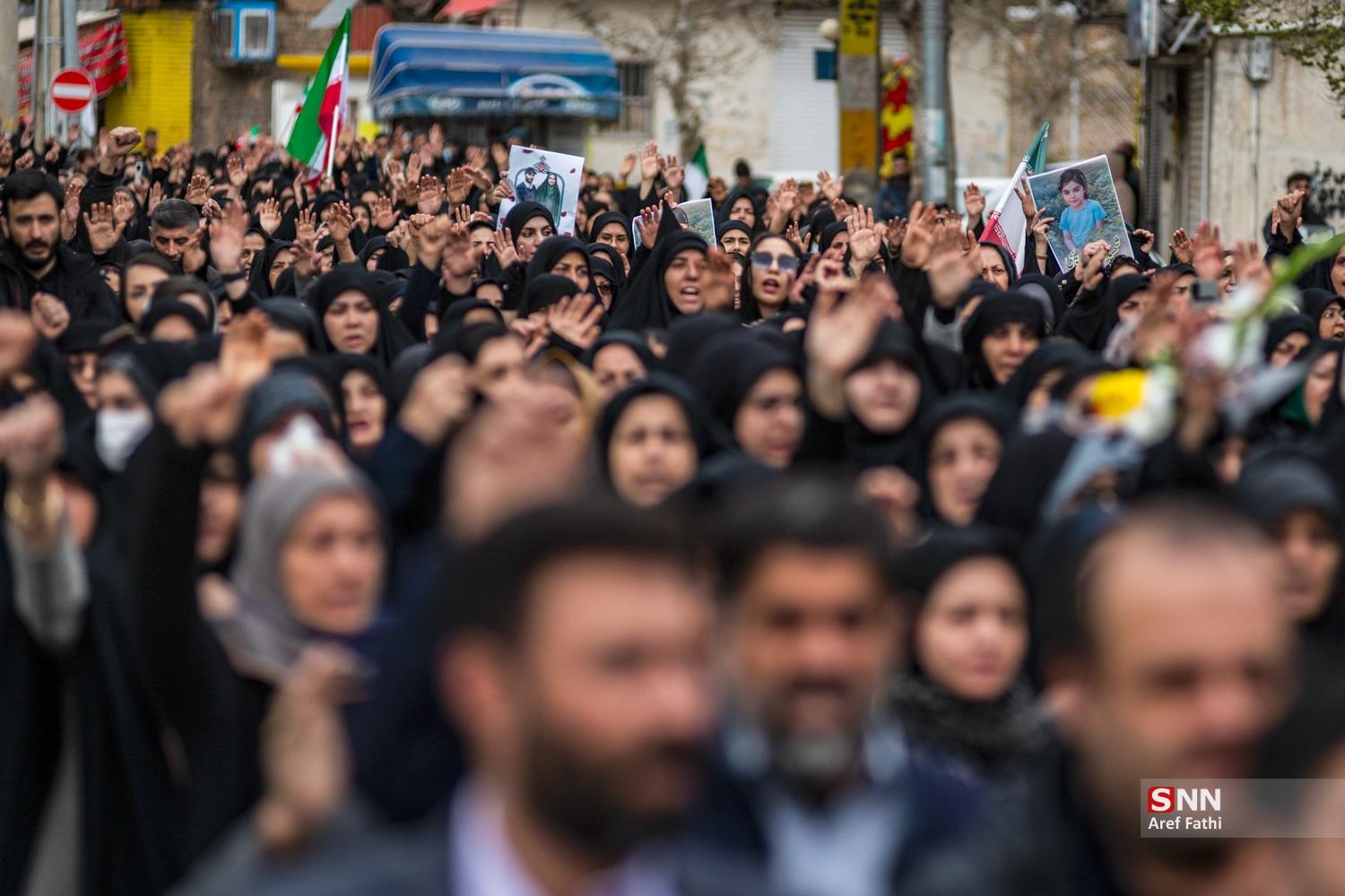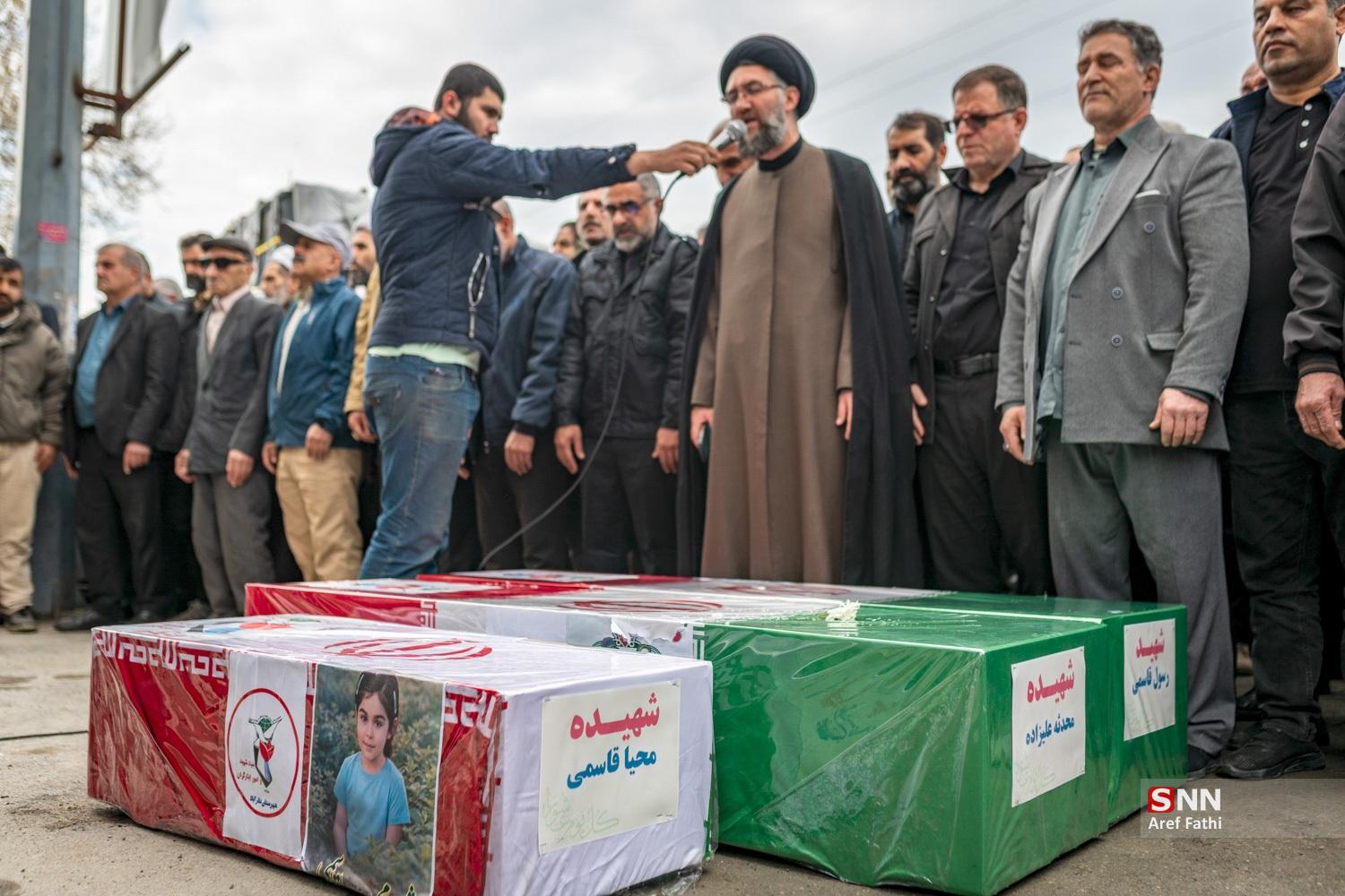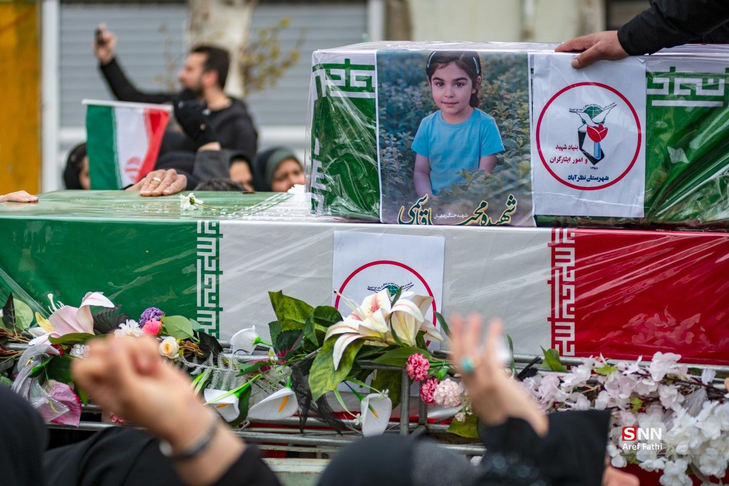 تشییع پیکر خانواده سه نفره رسول قاسمی، شهیده محدثه علیزاده و شهیده محیا قاسمی که در حملات آمریکایی - اسرائیلی به شهادت رسیدهاند امروز یکشنبه ۹ فروردین ماه در شهرستان نظرآباد برگزار شد.