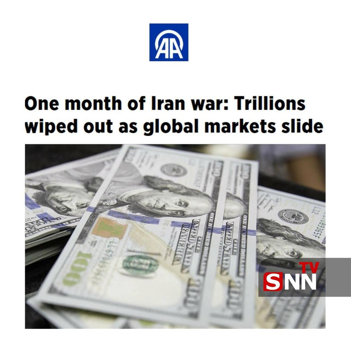 خبرگزاری آناتولی ترکیه در گزارشی آورده است: از زمان آغاز جنگ آمریکا و اسرائیل علیه ایران، همزمان با فرار سرمایهگذاران از داراییهای پرخطر، بازارهای بورس جهانی تریلیونها دلار از ارزش خود را از دست دادهاند.