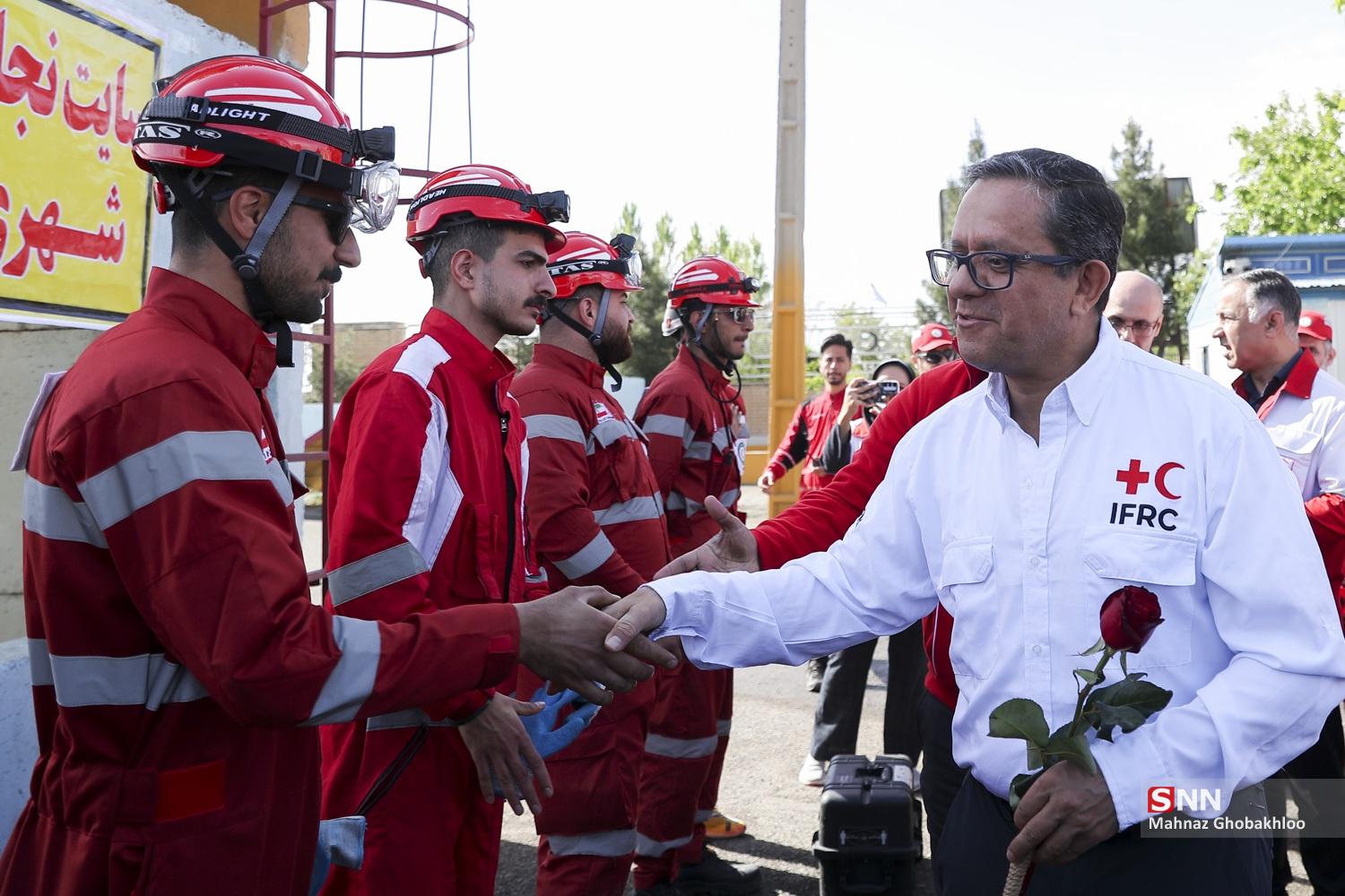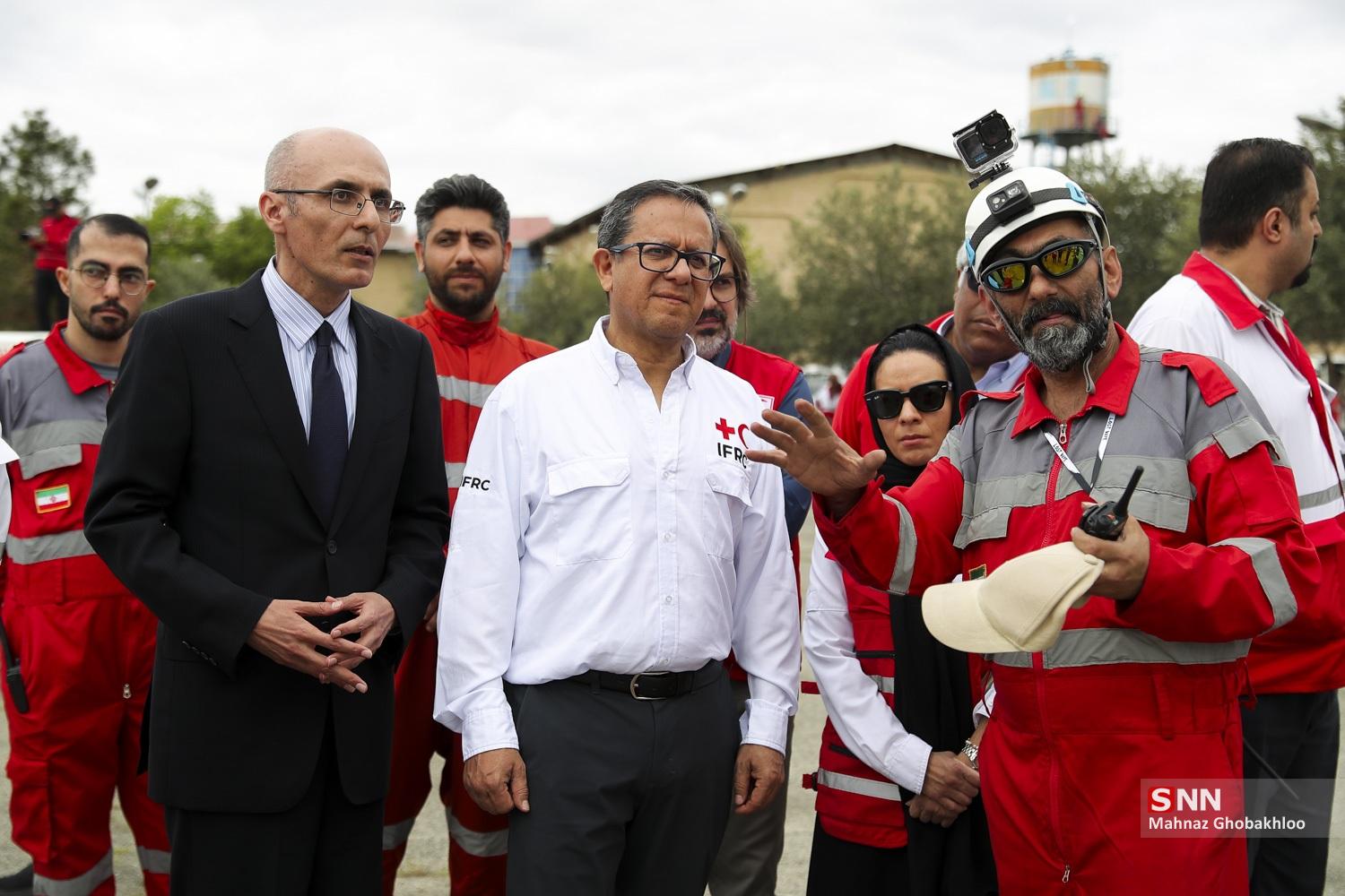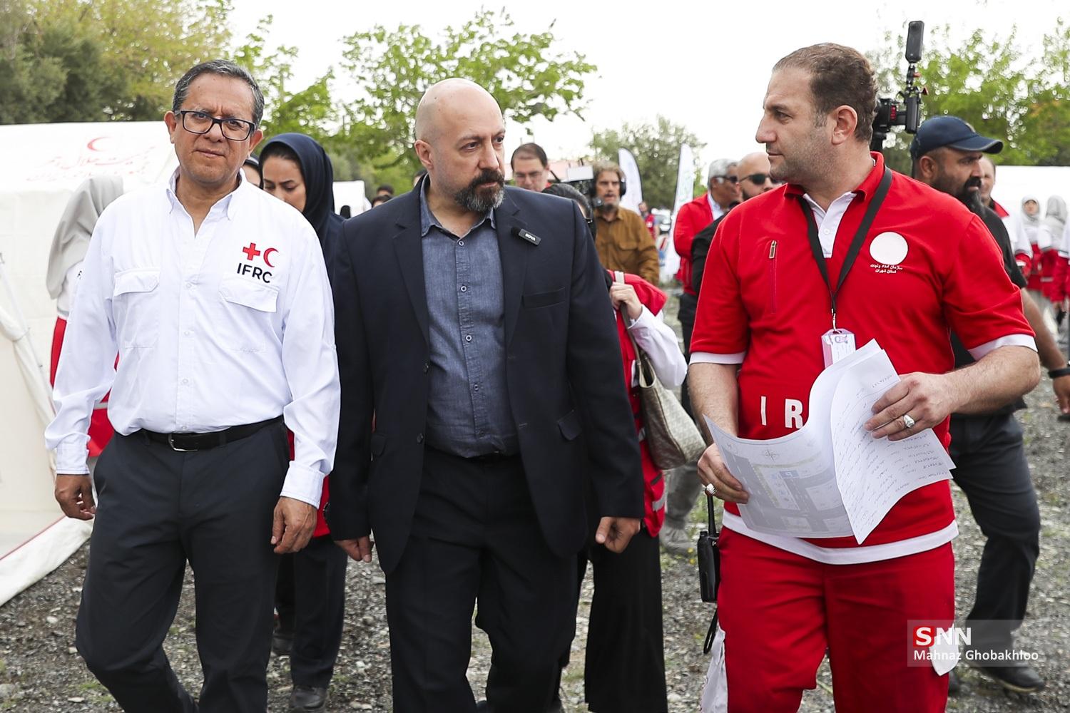 مانور امداد و نجات جمعیت هلالاحمر صبح امروز ۳۰ فروردین ماه ۱۴۰۵ با حضور خاویر کاستلانوس، معاون دبیرکل فدراسیون بینالمللی صلیب سرخ و تیمهای تخصصی داخلی و خارجی در اردوگاه اسکان اضطراری شهریار برگزار شد.