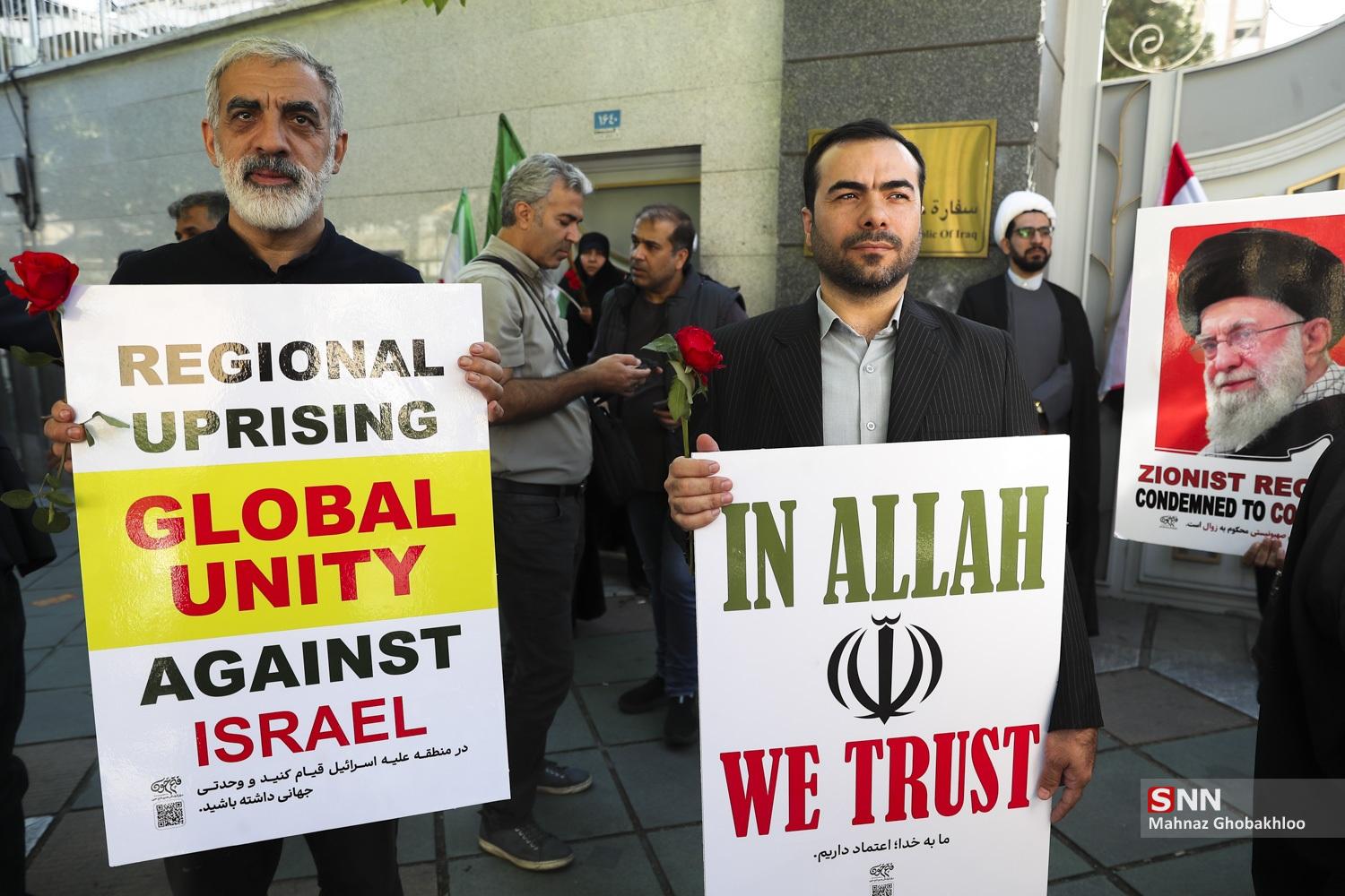 تجمع تکریم و تقدیر از مردم و دولت عراق به دلیل حمایت‌های ارزشمند آن کشور در جنگ تحمیلی آمریکا و رژیم صهیونیستی علیه ایران، عصر امروز پنجشنبه سوم اردیبهشت ۱۴۰۵ مقابل سفارت عراق برگزار شد.