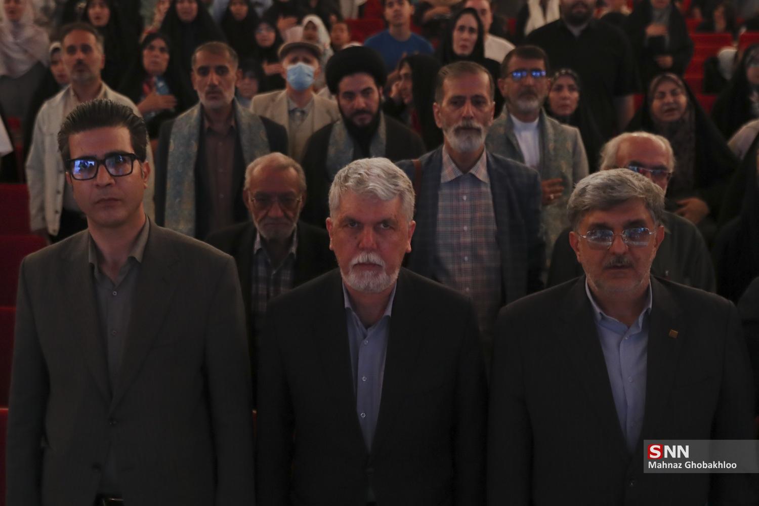 محفل هنرمندانه حماسه ایران امام رضا (ع) عصر امروز ۸ اردیبهشت ۱۴۰۵ با حضور سید عباس صالحی، وزیر فرهنگ و ارشاد اسلامی و جمعی از هنرمندان، شاعران، نویسندگان و خادمان قرآنی، در تالار وحدت برگزار شد.